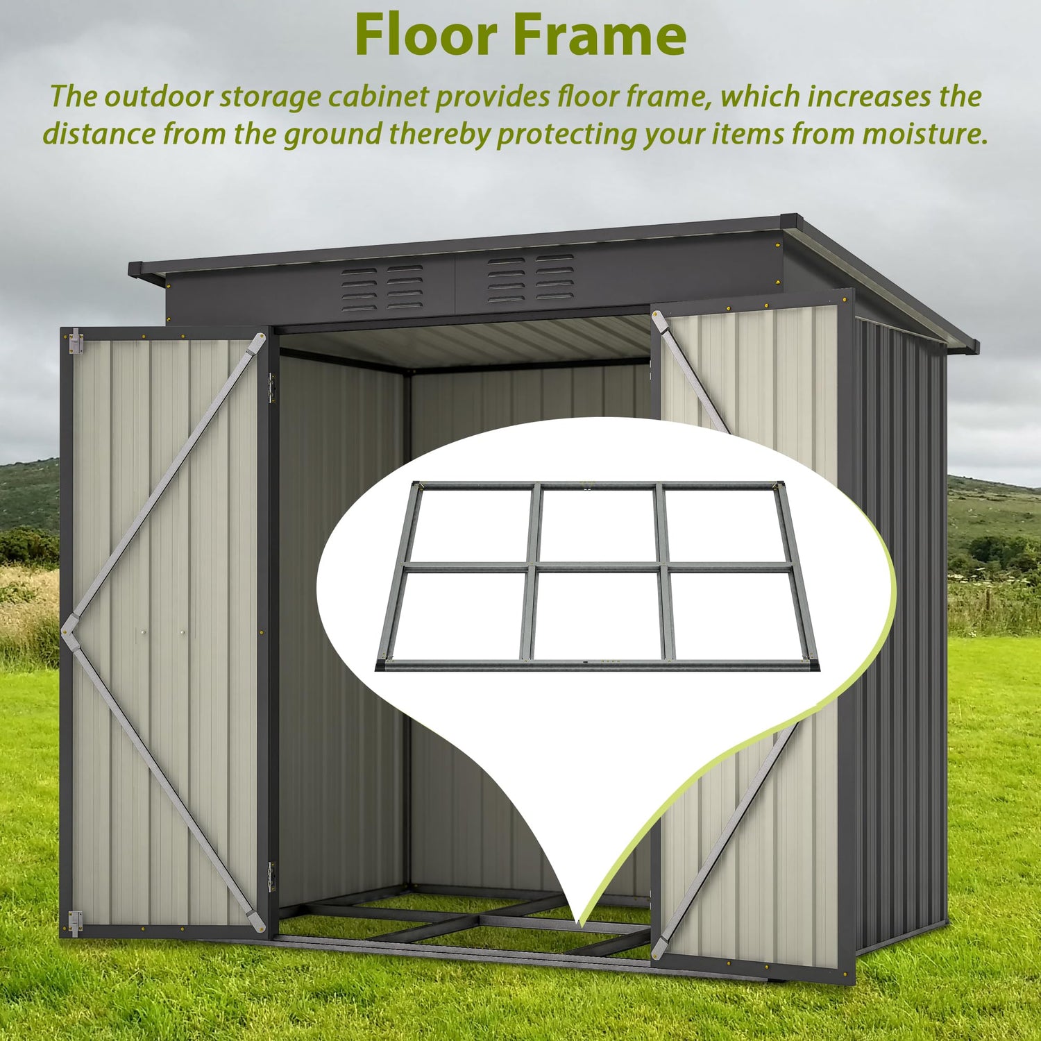 Outdoor Storage Shed, 6 X 4 FT Large Metal Utility Tool Sheds with Floor Frame, Steel Garden Shed for Backyard Garden Patio Lawn,Black