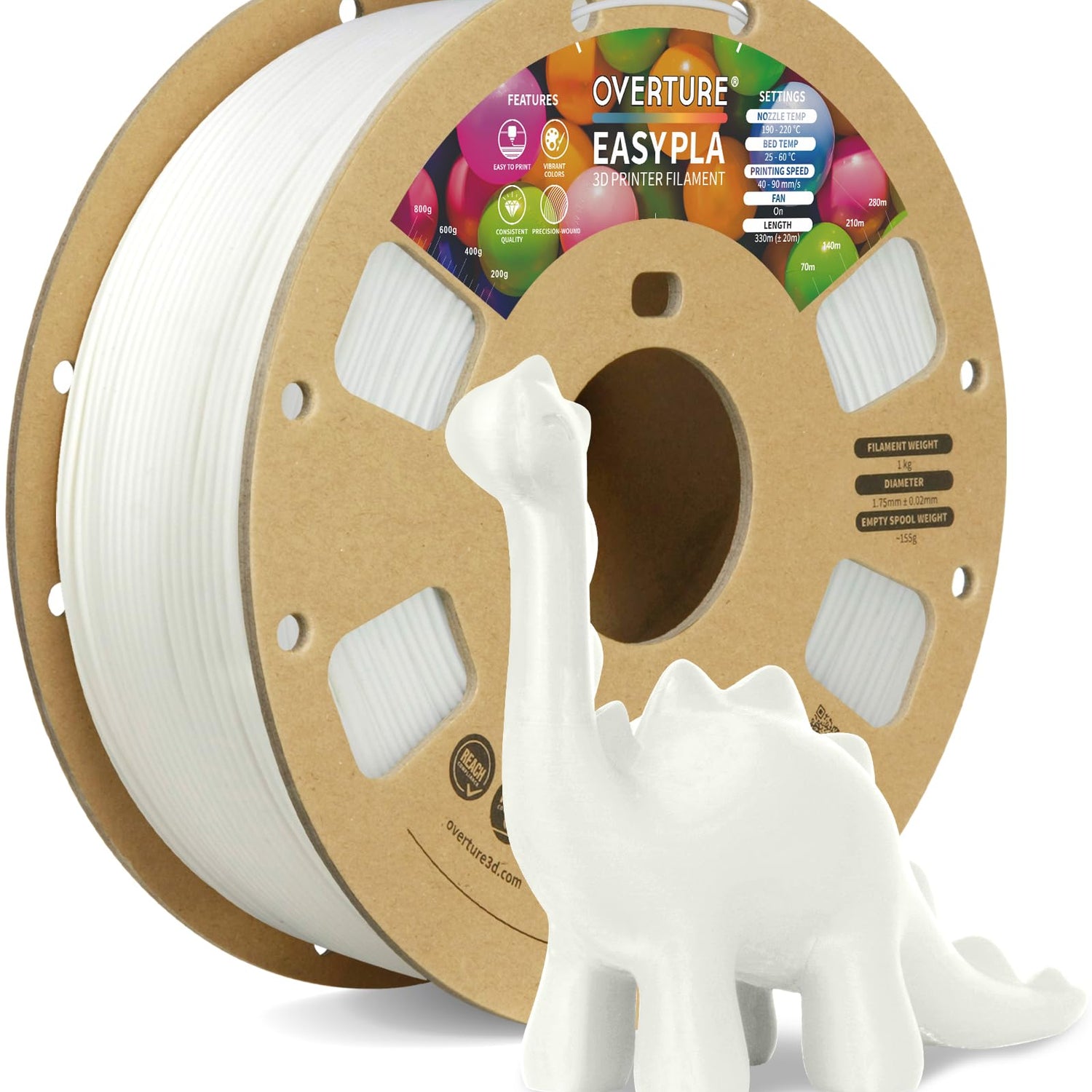 OVERTURE Easy PLA 1.75mm 3D Printer Filament, 1kg PLA Cardboard Spool (2.2lbs), Dimensional Accuracy +/- 0.02mm, Fit Most FDM Printer (Easy White)