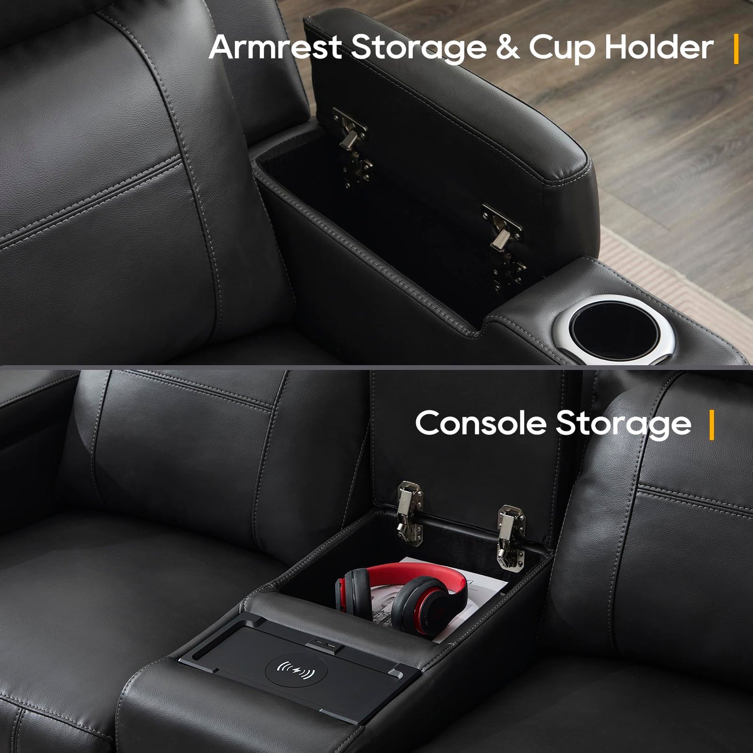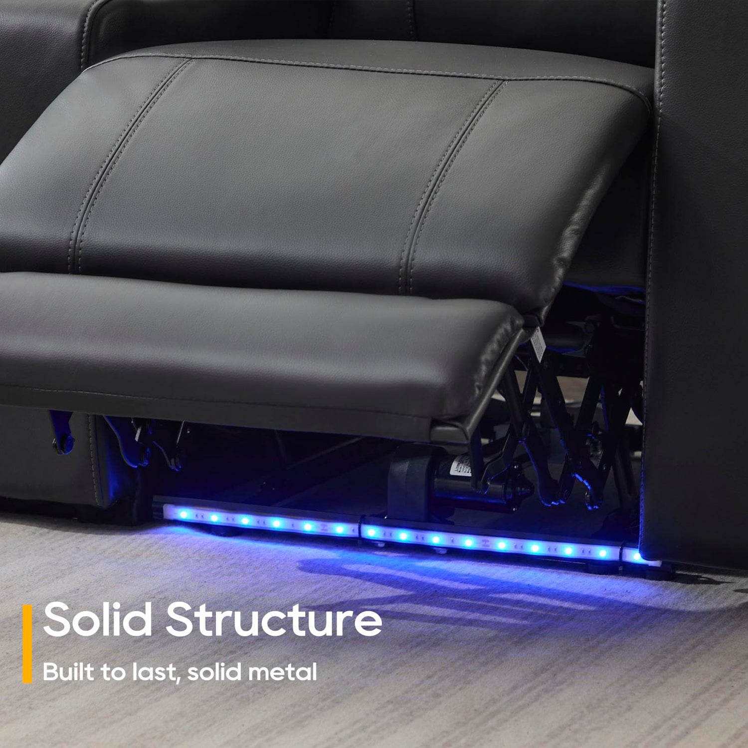 P.H.Furn Power Reclining Loveseat Sofa, Adjustable Headrest, Blue LED Lighting, Home Theater Seating with Storage, Cup Holders, USB, Wireless Charging, Living Room RV