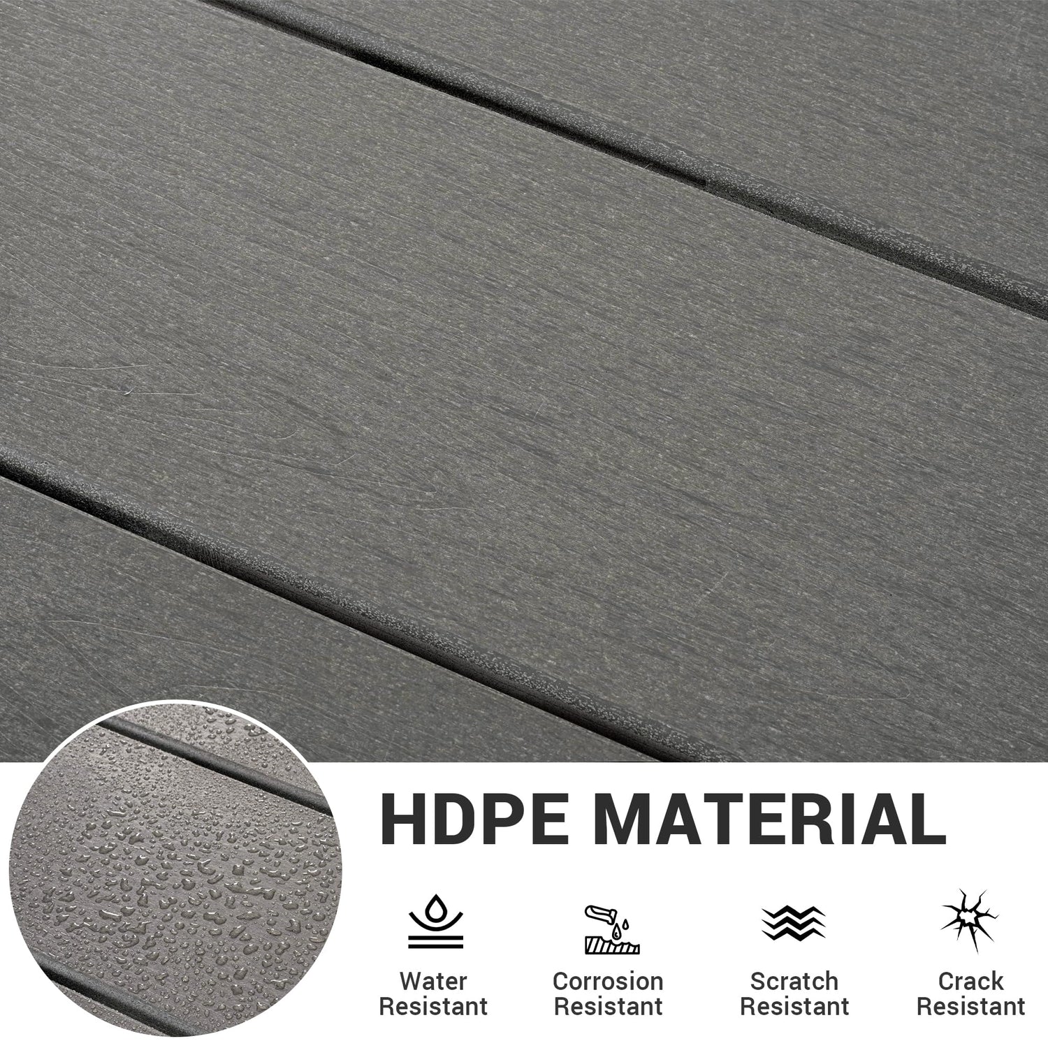 - All-Weather Durability: Made with high-quality HDPE, this patio dining set holds up well against the elements. It supports heavy items easily, resists spills and stains, and maintains its color season after season with UV-stabilized material. Rust-free hardware and sturdy components ensure it lasts through rain, sun, and snow year-round.