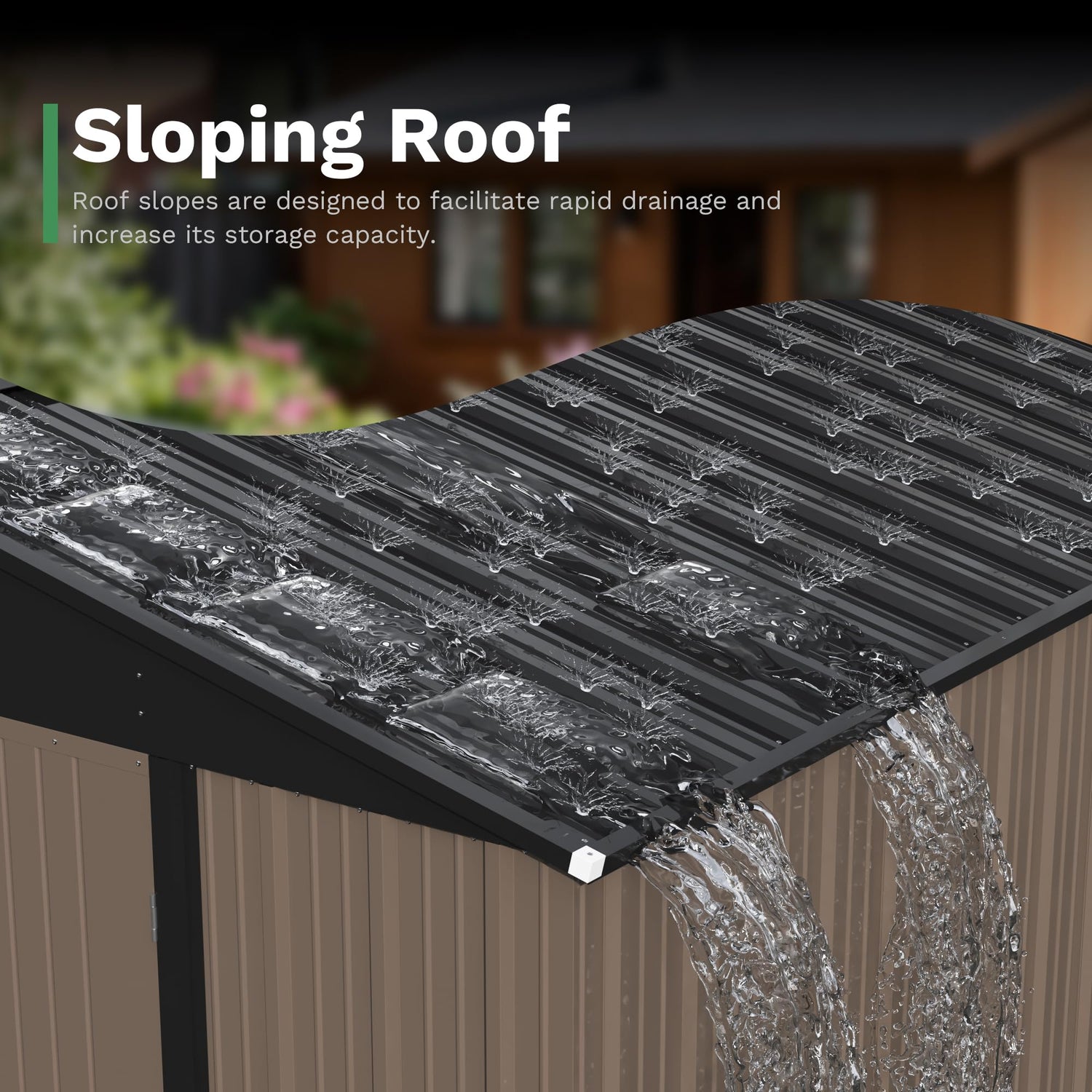 - [Unique Design]: The outdoor storage shed is equipped with a lockable door, ensuring security and facilitating convenient access to stored items. The slooping roof design offers enhanced storage capacity while mitigating the risk of rainwater accumulation.