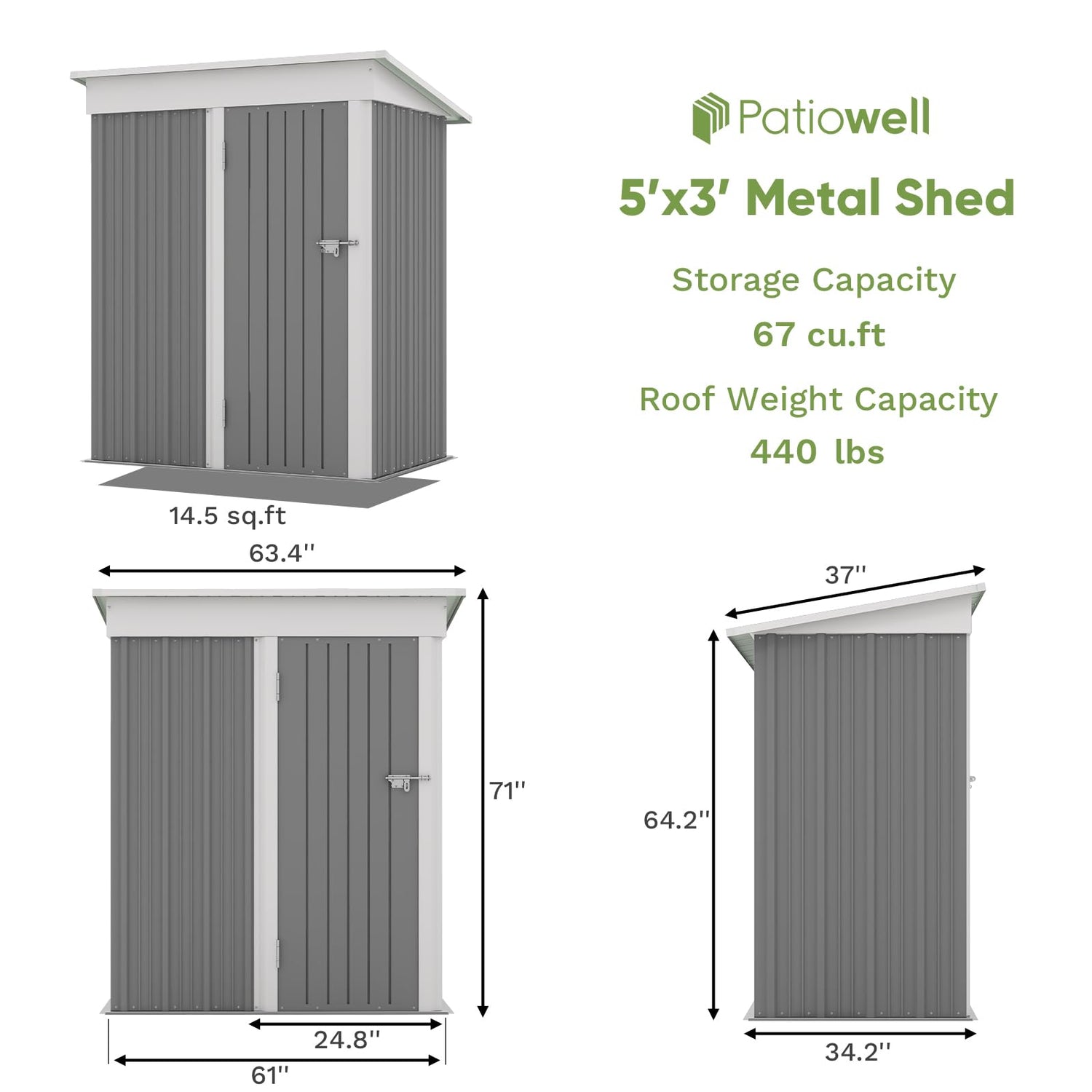 Patiowell 5x3 FT Outdoor Storage Shed, Garden Tool Shed with Sloping Roof and Lockable Door, Metal Shed for Backyard Garden Patio Lawn, Gray