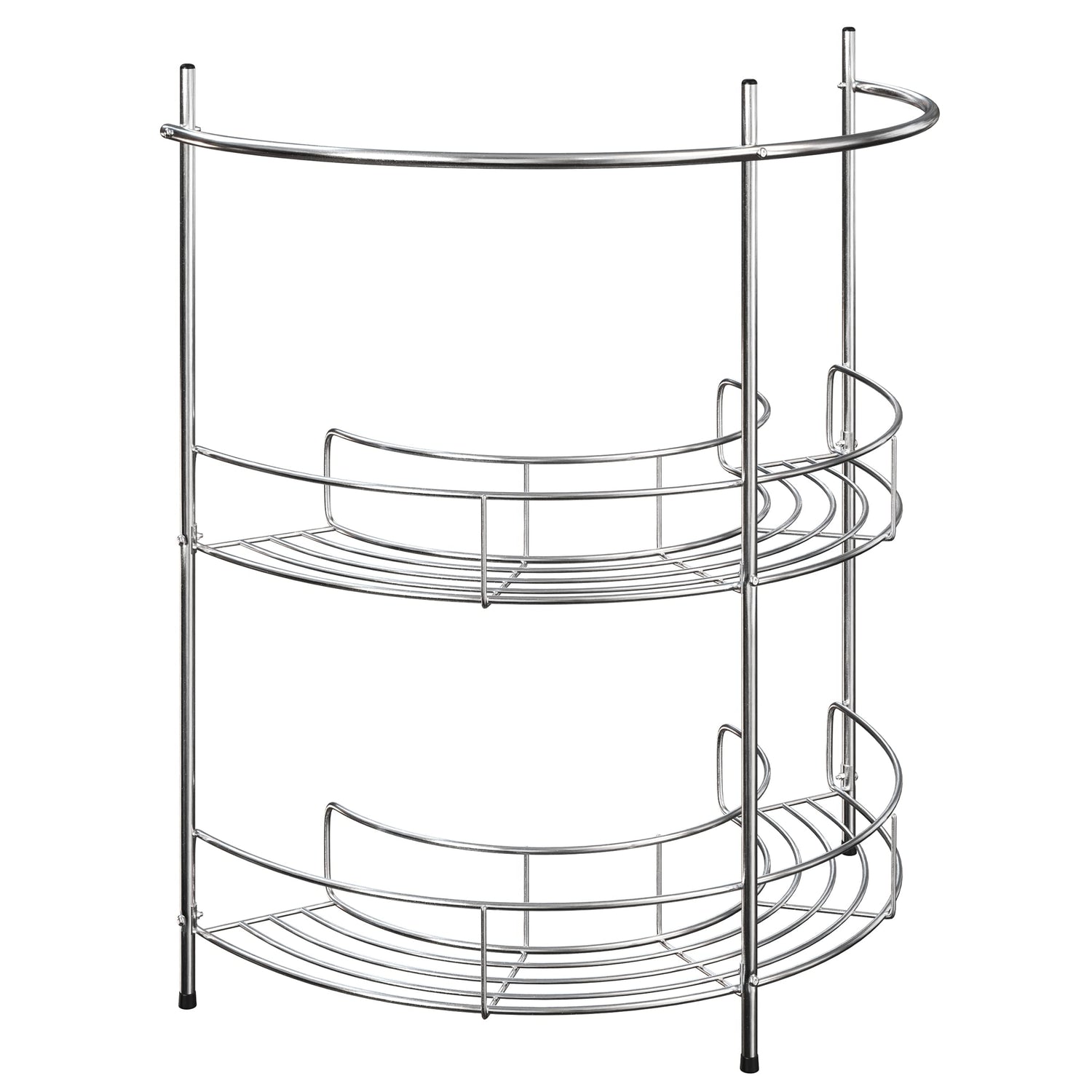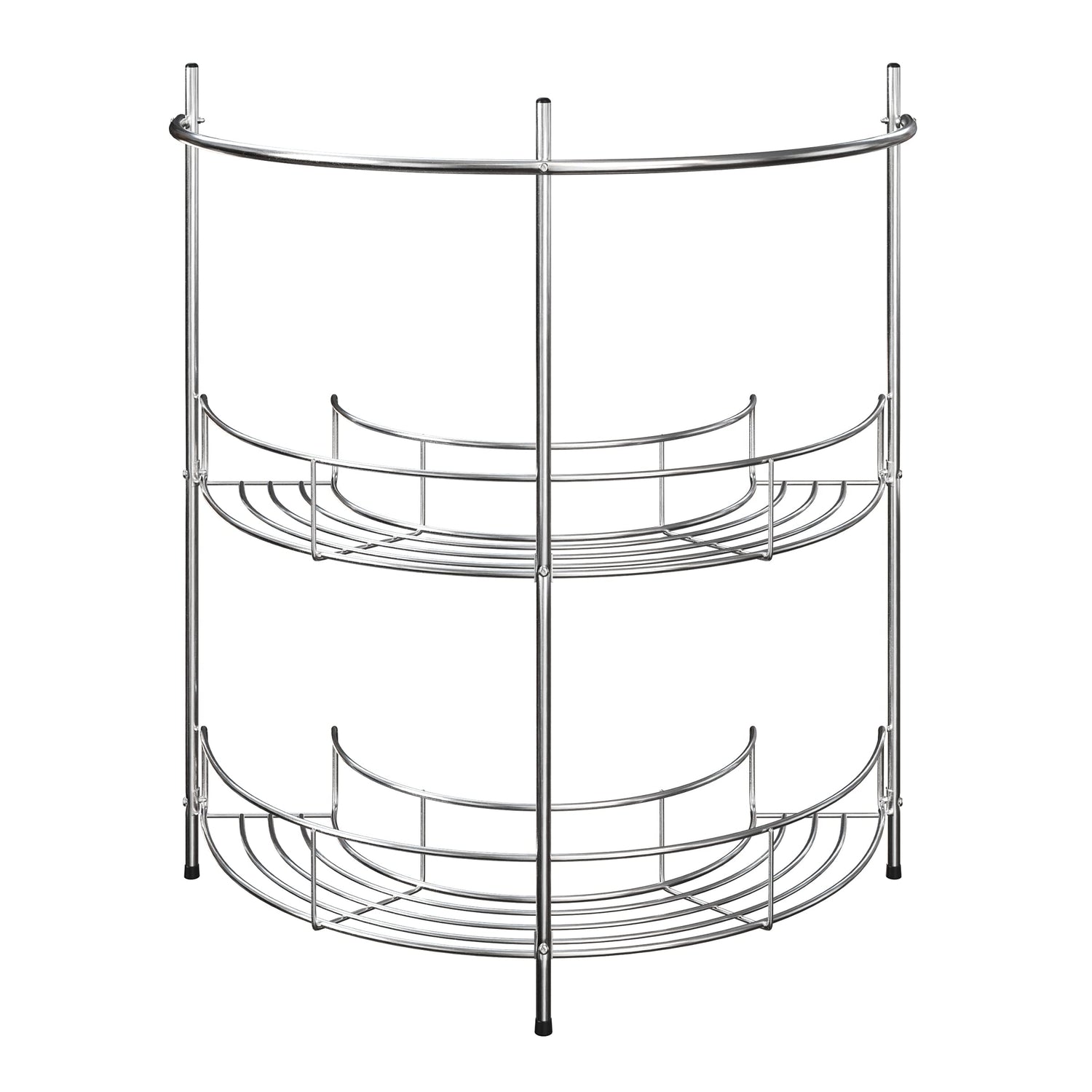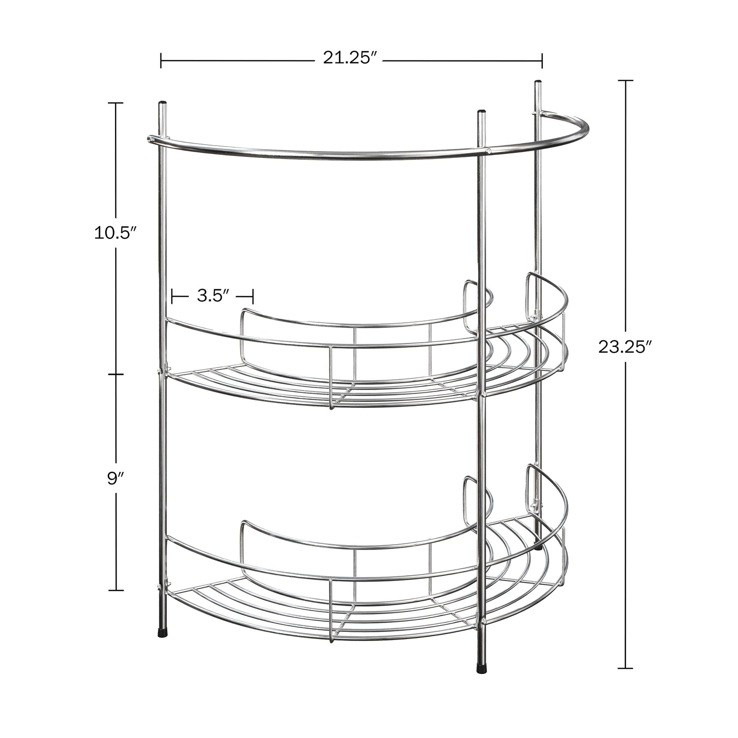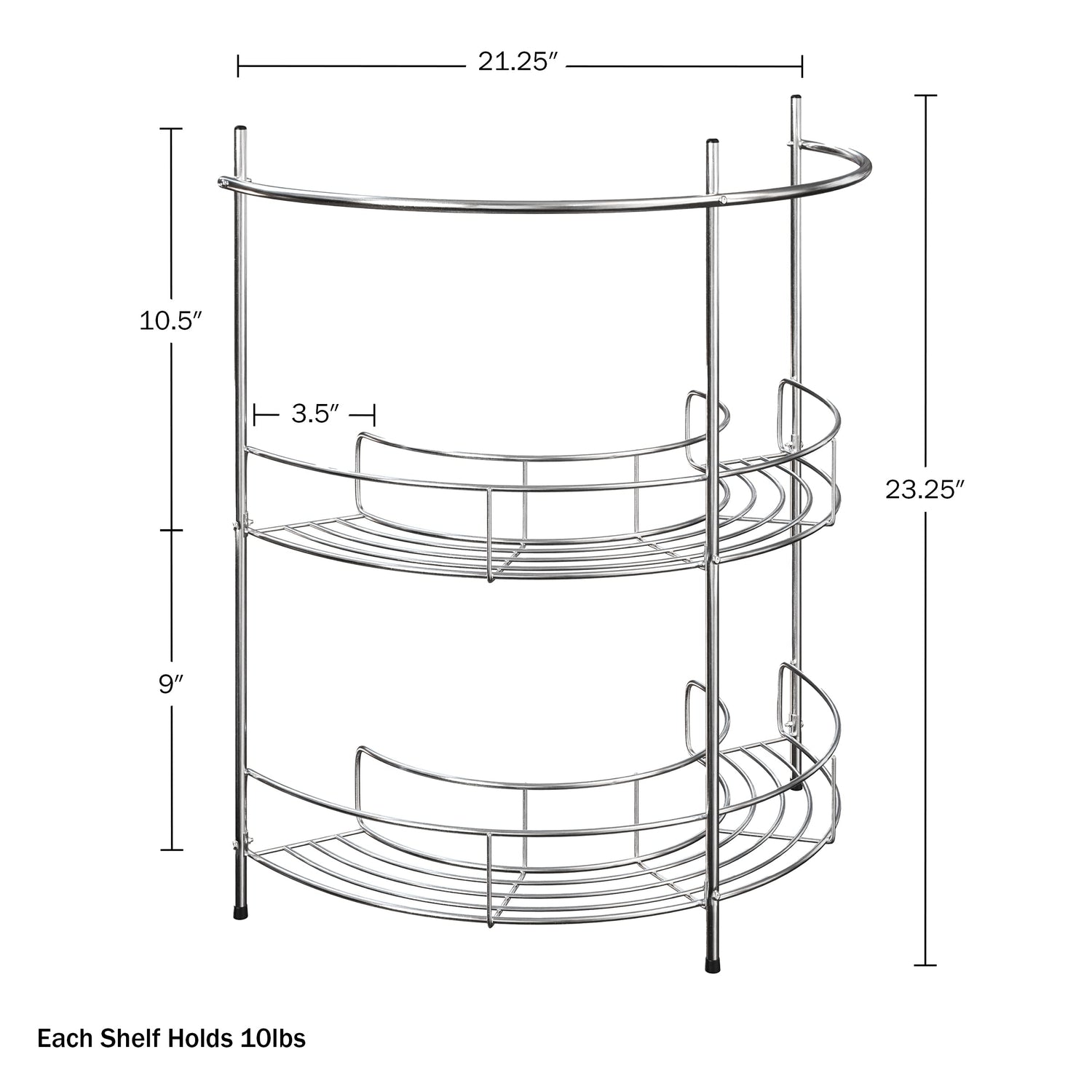 - PRODUCT DETAILS - Materials: Chrome-Plated Metal. Dimensions: (L) 21.25” x (W) 11” x (H) 23.25”; Each Shelf: (W) 3.5”; Top Shelf: (H) 10.5”; Bottom Shelf: (H) 9”. Weight Capacity: 10lbs per Shelf. Color: Silver.