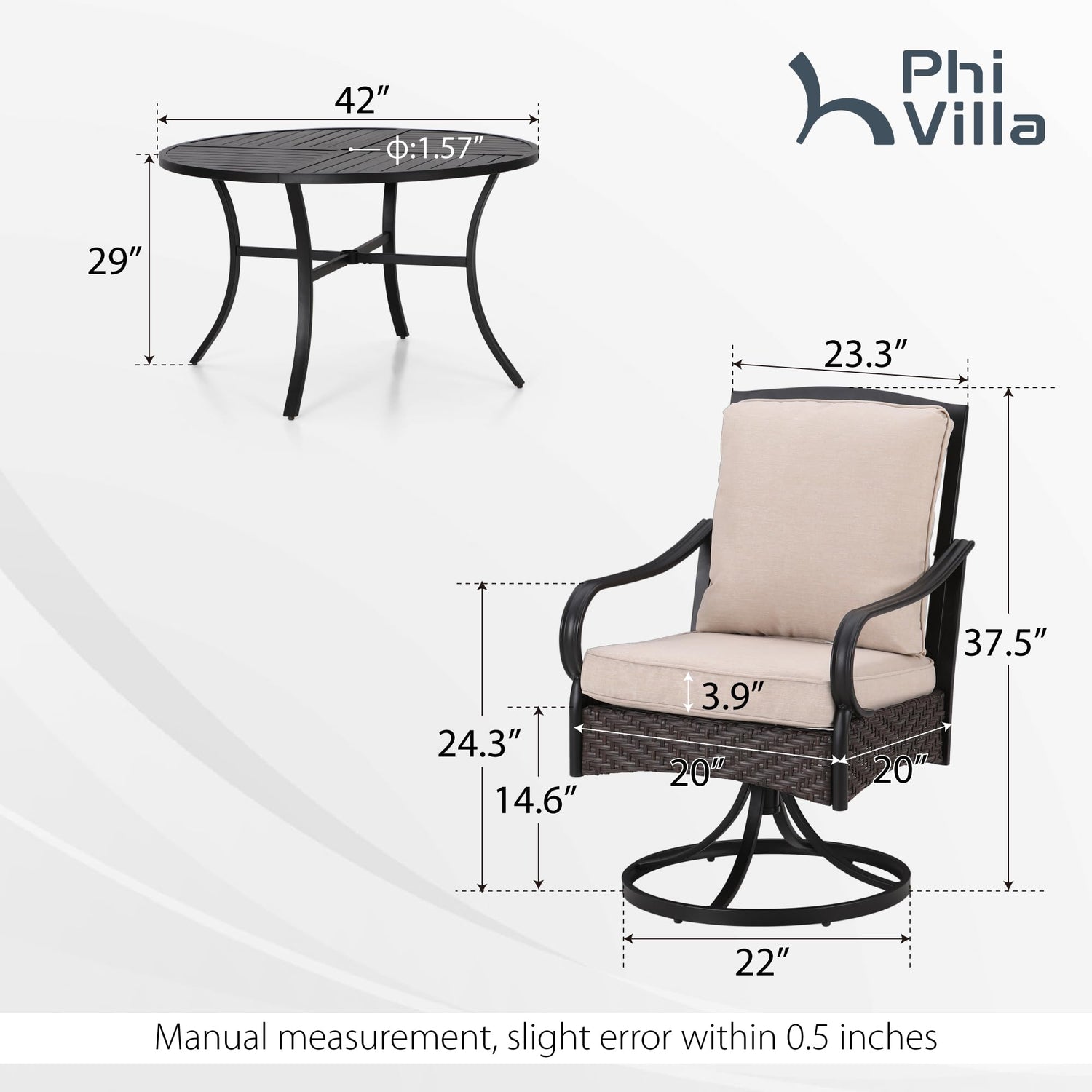 PHI VILLA 5-Piece Outdoor Dining Sets, All-Weather Patio Table and Chairs Set for 4, Heavy Duty Patio Table Set Round for Deck, 4 Extra Large Outdoor Metal Wicker Dining Chairs with Thick Cushions