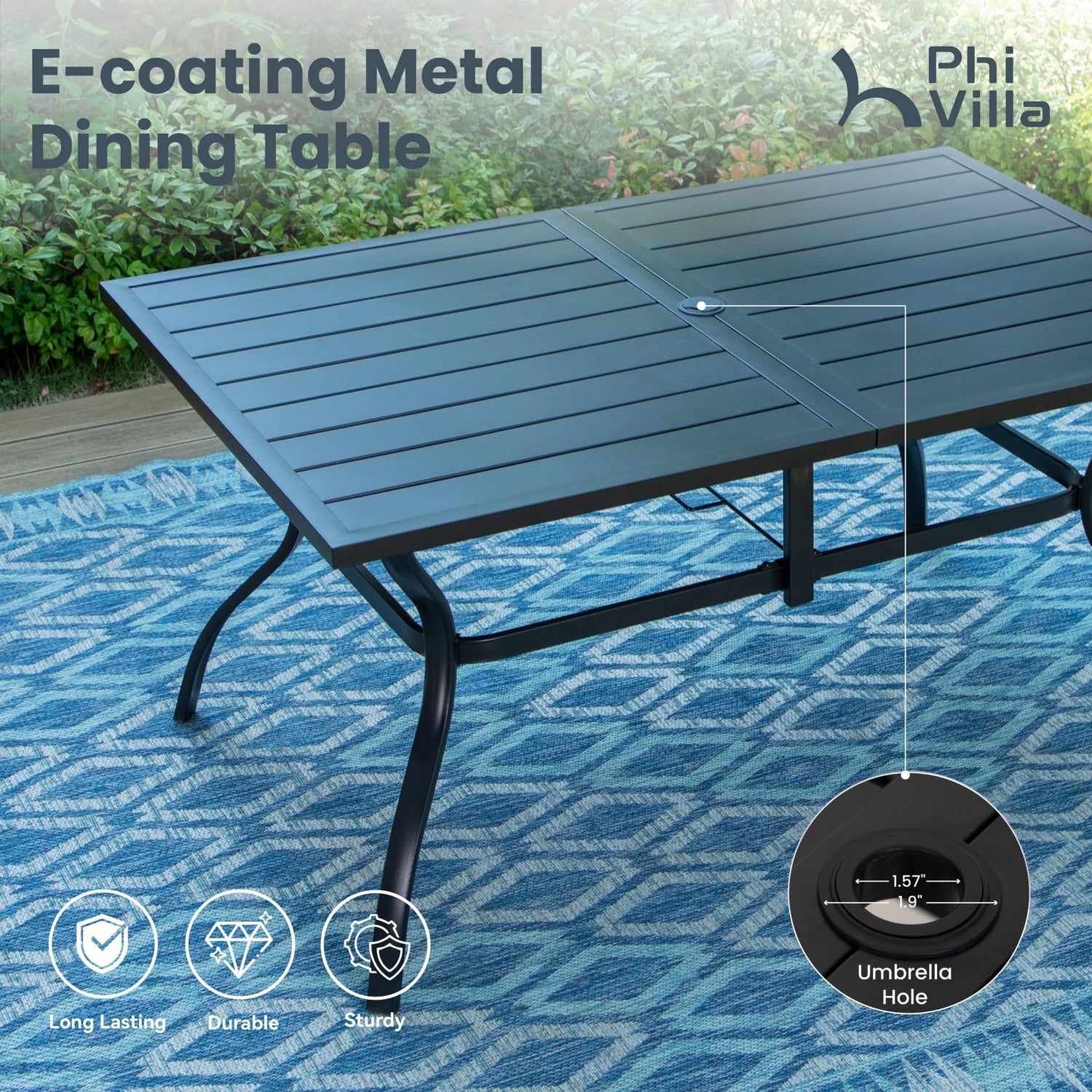 - Large Patio Dining Table: Large enough for 6 person family dinner or party. The simple and classic black table has always been people's favorite. In addition, there is an umbrella hole, give you more choices