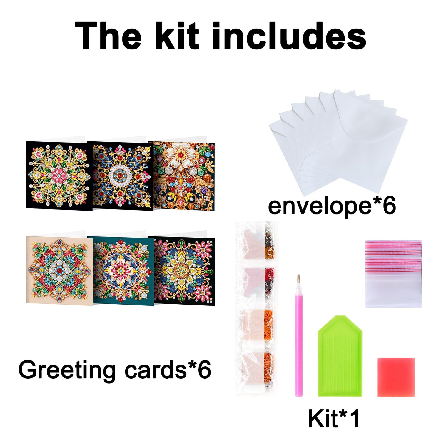 - Package Included: You will receive 6 pieces diamond painting greeting card + 6 pieces envelope + 1 set of rhinestones + 1 set of tools (1 piece drill pen + 1 piece tray + 1 piece clay)