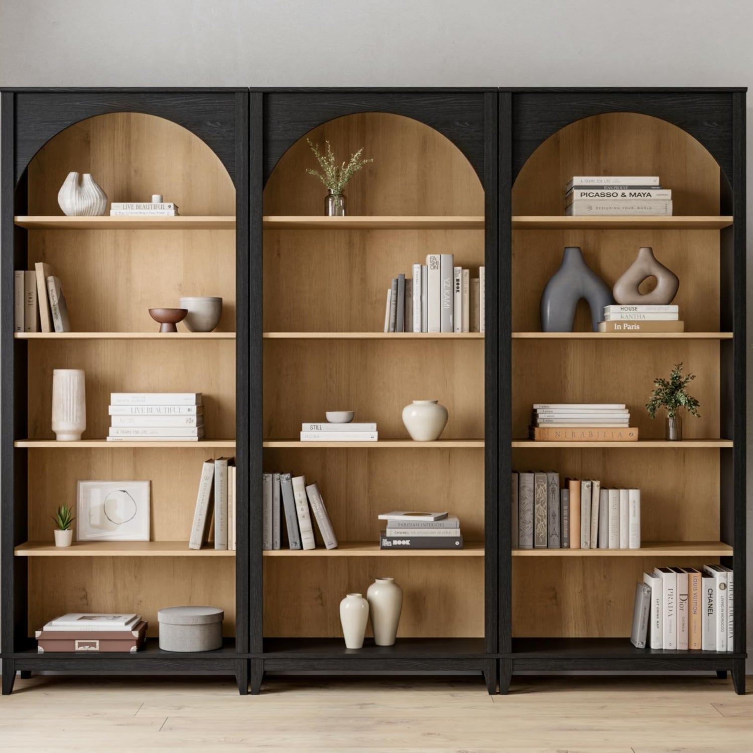 • EASY TO ASSEMBLE: Black oak bookcase includes detailed, step-by-step instructions & all necessary parts- the versatile arched bookcase typically be assembled in 45 minutes or less with basic hand tools by 2 person.