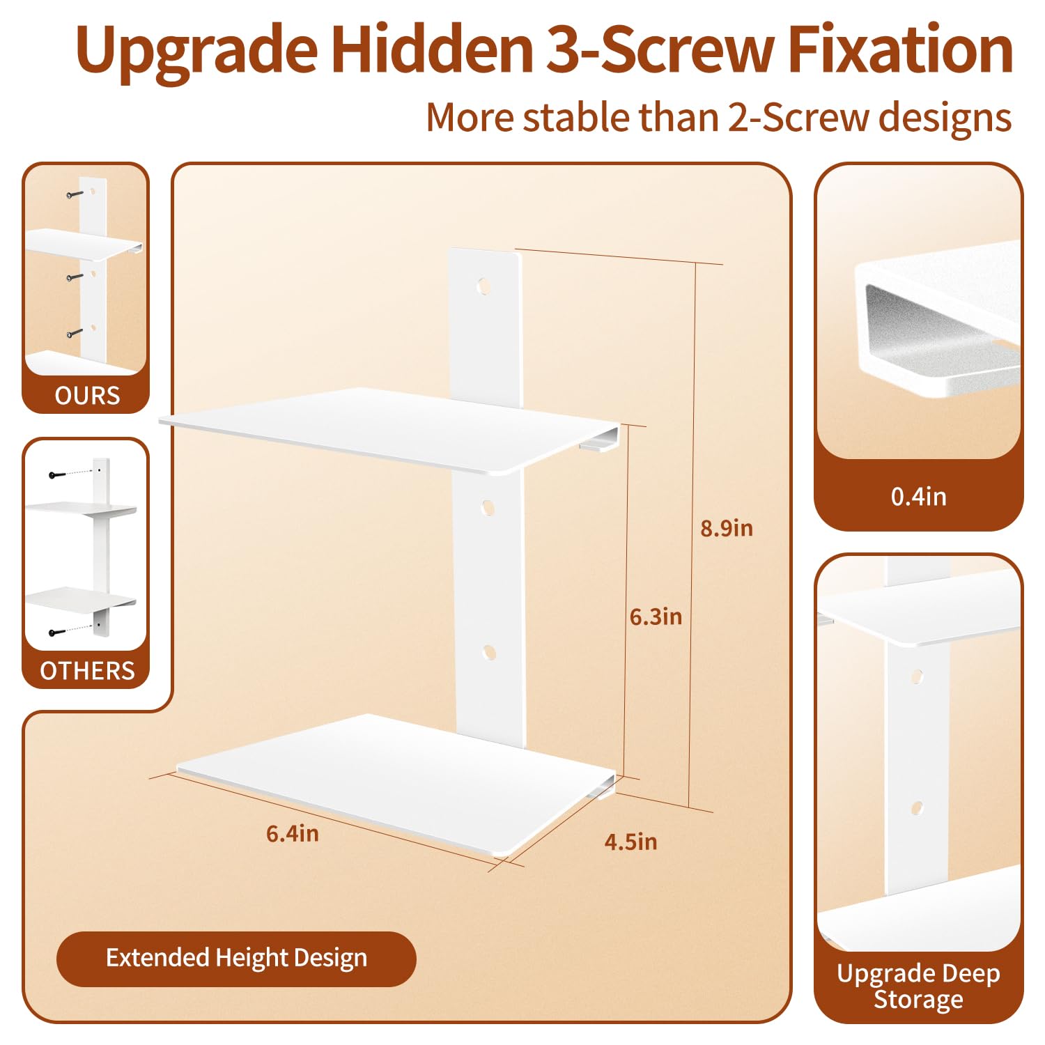 - Maximize Storage Space - The extended version of wall bookshelf measures approx 6.4 x 4.52 x 8.85 inch, extended the height to provide more space for your books. And with double-layer design floating book shelves for wall, it makes more full use of your wall space, ideal for small spaces