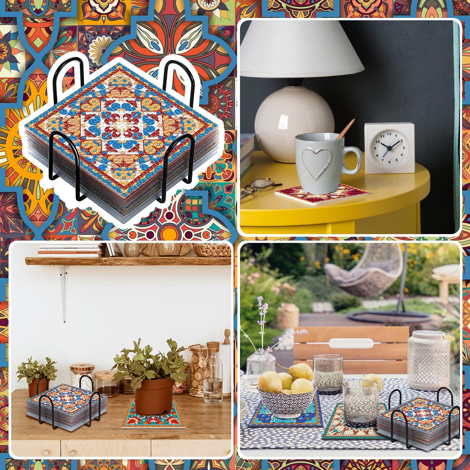 • Boho Theme Design: our diamond art coasters adopt classic element designs, including paisley and more, look cute and elegant, adding bright colors to your dining table