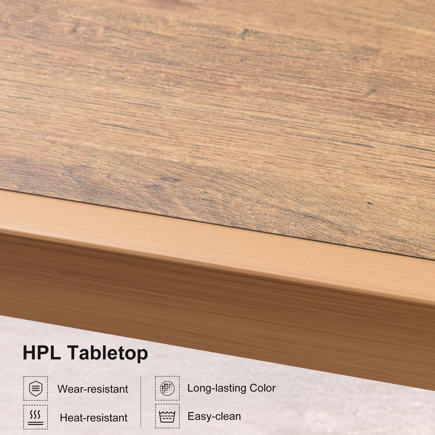 - Premium HPL Material: The tabletop is made of natural cellulose and resins, it has environmentally neutral and long-lasting, extreme weather resistant, wear resistance and not easy to crack.