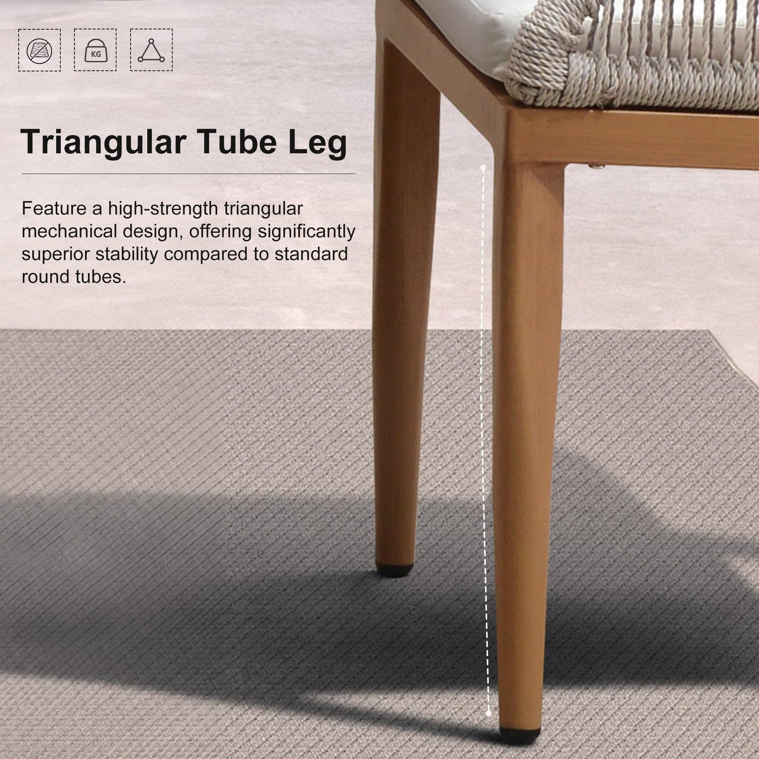 - Sturdy Structure: Constructed with a premium rust resistant powder coated aluminum frame. The dining set features thick table legs and triangular tube structured dining chairs, ensuring stability and durability.