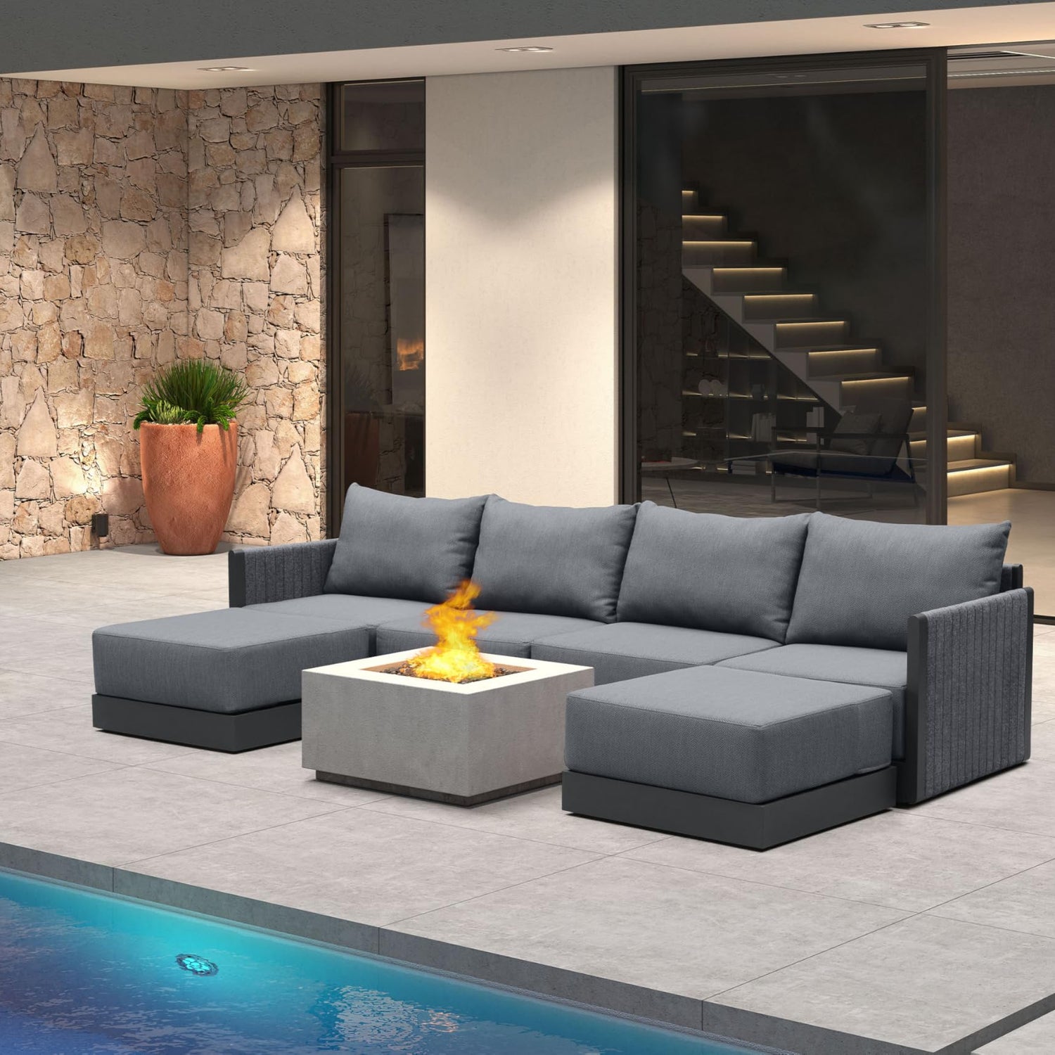 PURPLE LEAF Patio Furniture Set 6 Pieces Patio Seating Sofas with Ottoman Aluminum Furniture Outdoor Couch Sectional Set with Cushions Patio Conversation Sets Gray