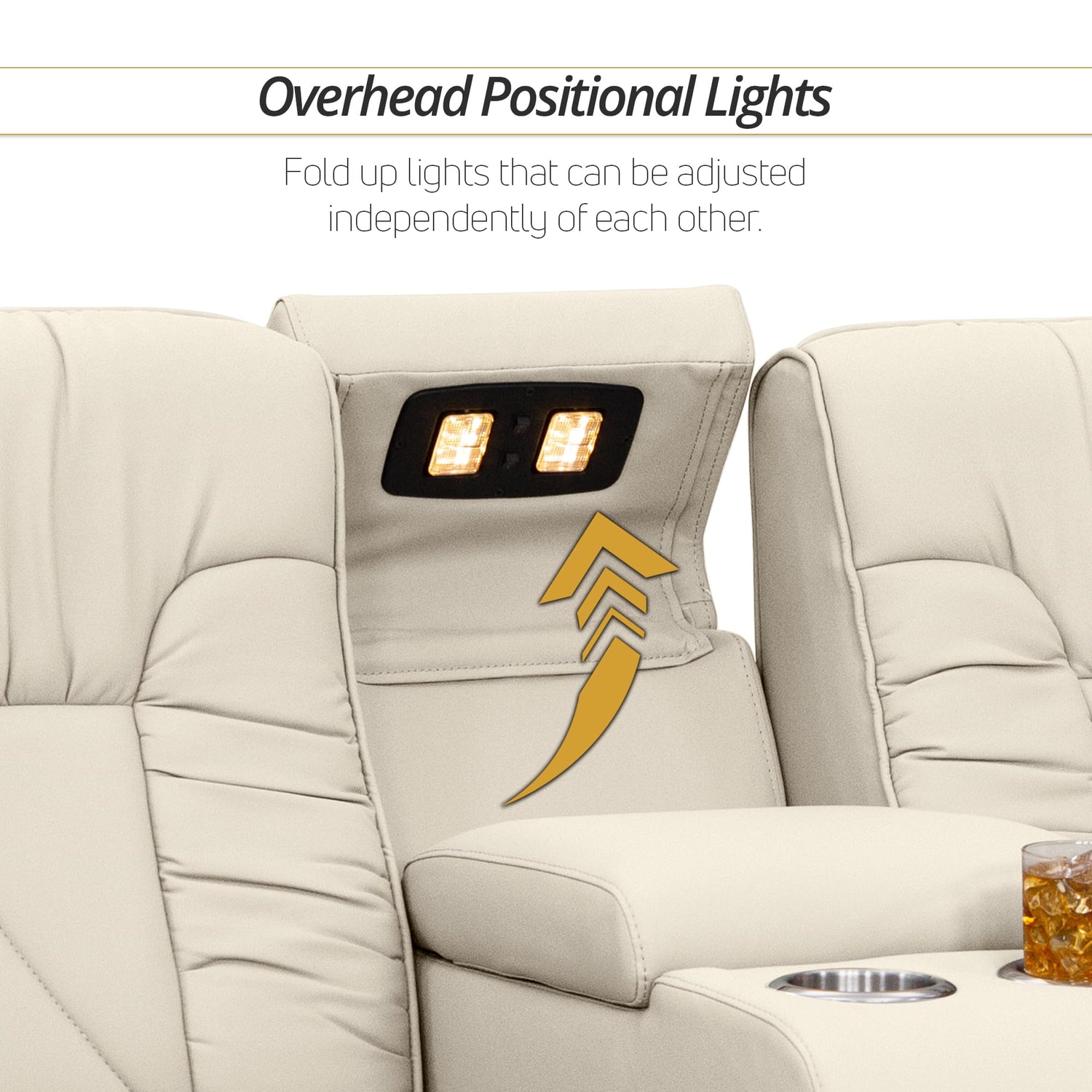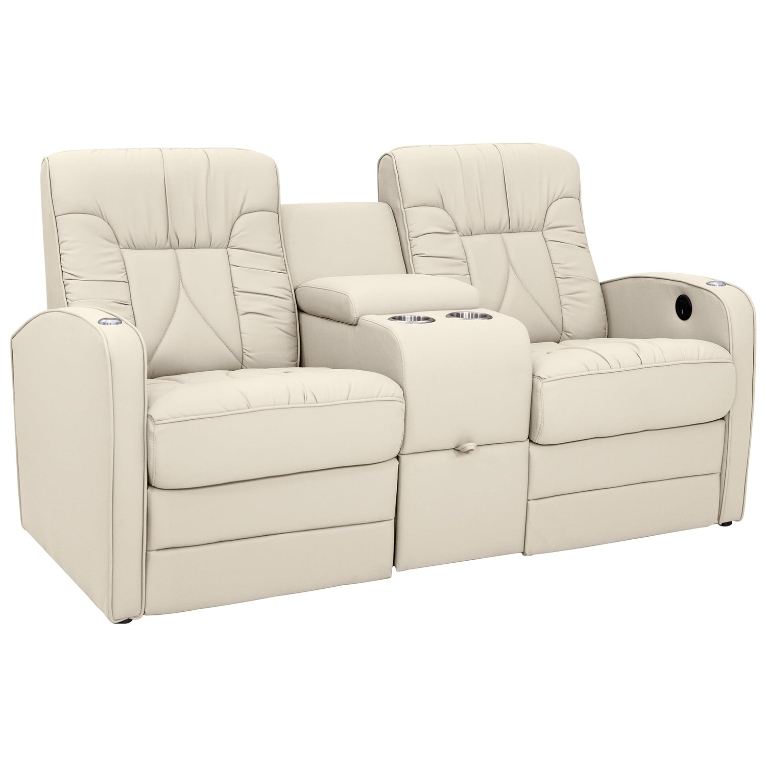 Qualitex De Leon RV Loveseat w/Storage Console, Ultimate Leather, Heat and Massage, Power Recline, Bisque