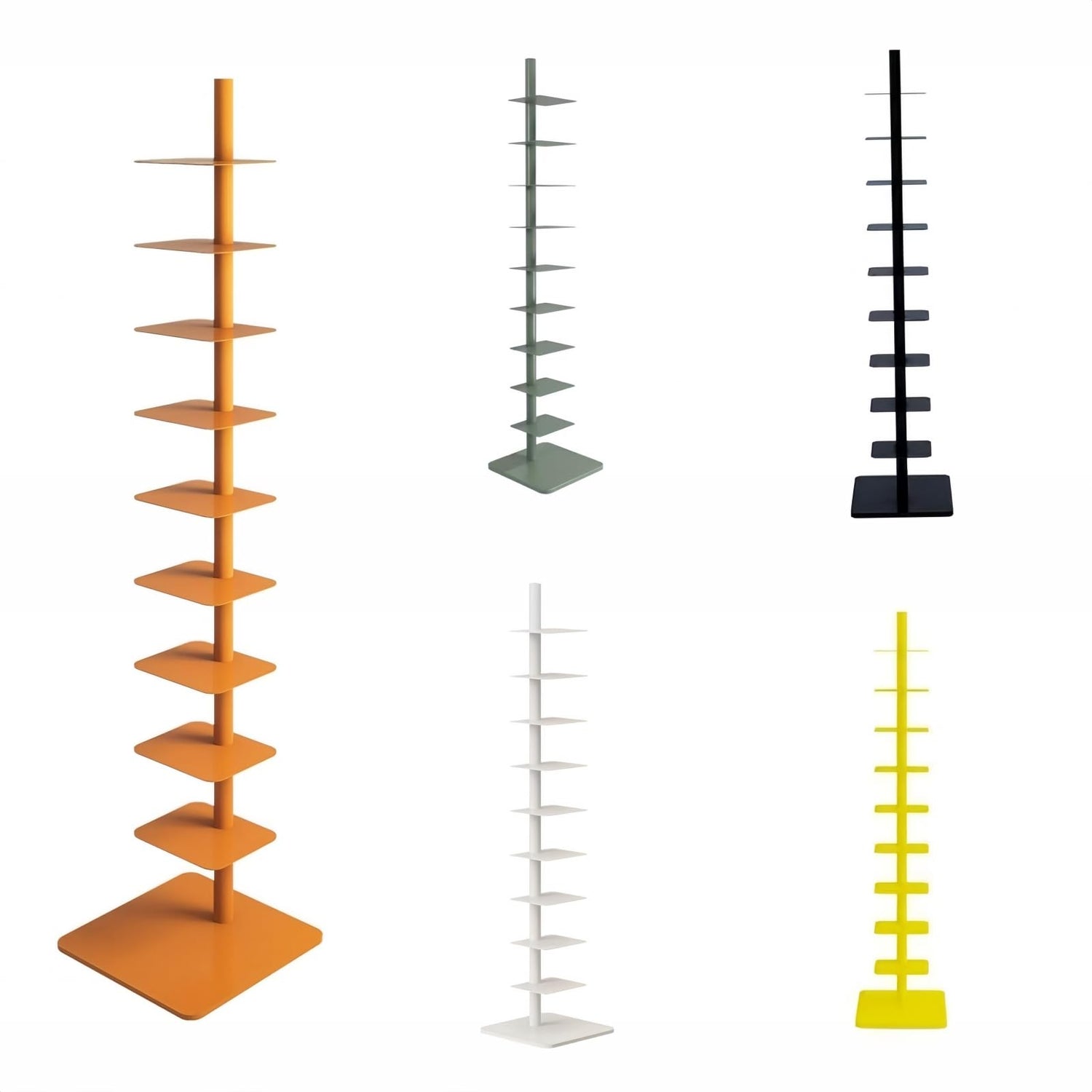 Quooyong 9-Tier Spine Bookshelf Metal Bookcase Vertical Book Shelf Tower Rotating Tall Narrow Bookshelf Ladder Book Rack Indoor (Orange)