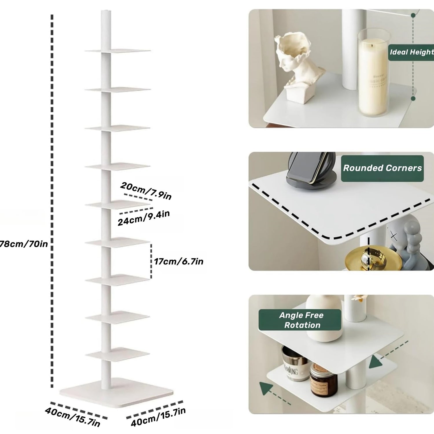 - EASY INSTALLATION: The vertical bookshelf tower is extremely simple to install without any tools. After you open the package, install it from bottom to top, and you can rotate the angle at will, allowing you to experience the fun of DIY to the fullest.