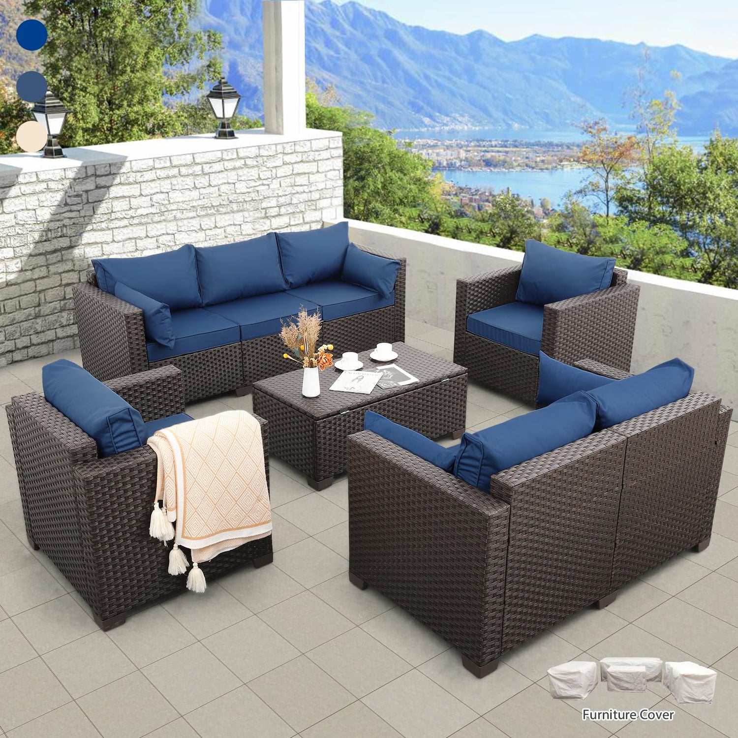 - Highly Adaptable: bring versatile and interesting style and seating space with this outdoor sectional with differentiated design, distinctive outdoor couch, loveseat, outdoor chairs, and configuration; graceful, casual style that doesn't compromise on comfort and durability, suitable for any decorative fashion and scene; the table with storage allows storing multiple items for easy access anytime, greatly enriching your outdoor life