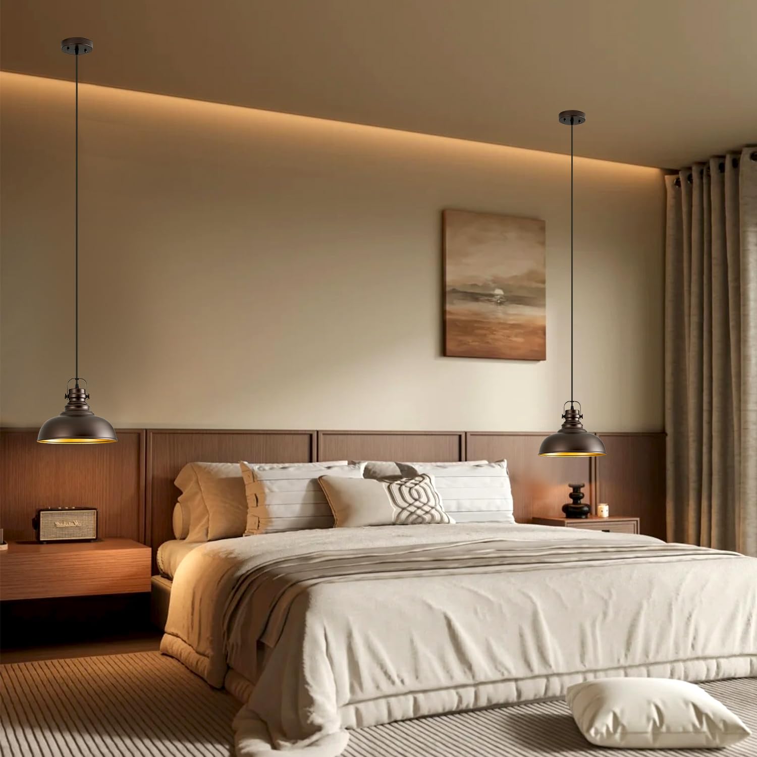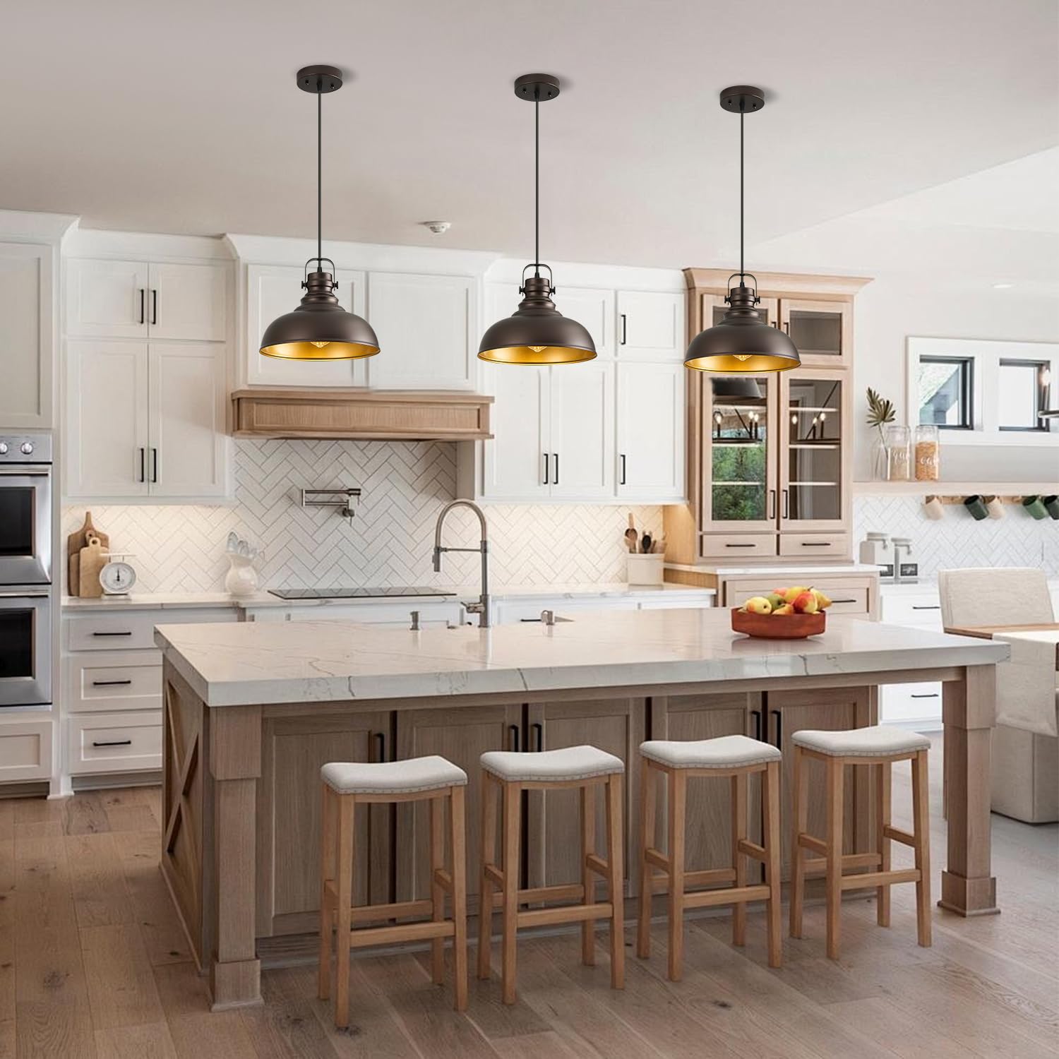 - Industrial & Vintage Charm: This pendant lights kitchen island brings industrial and vintage aesthetics to your kitchen island. The kitchen island lighting with Oil Rubbed Bronze Finish and retro-style dome shade with an inner gold finish create a farmhouse appeal, perfect for various spaces like home, dining rooms, kitchen islands, warehouses, and more