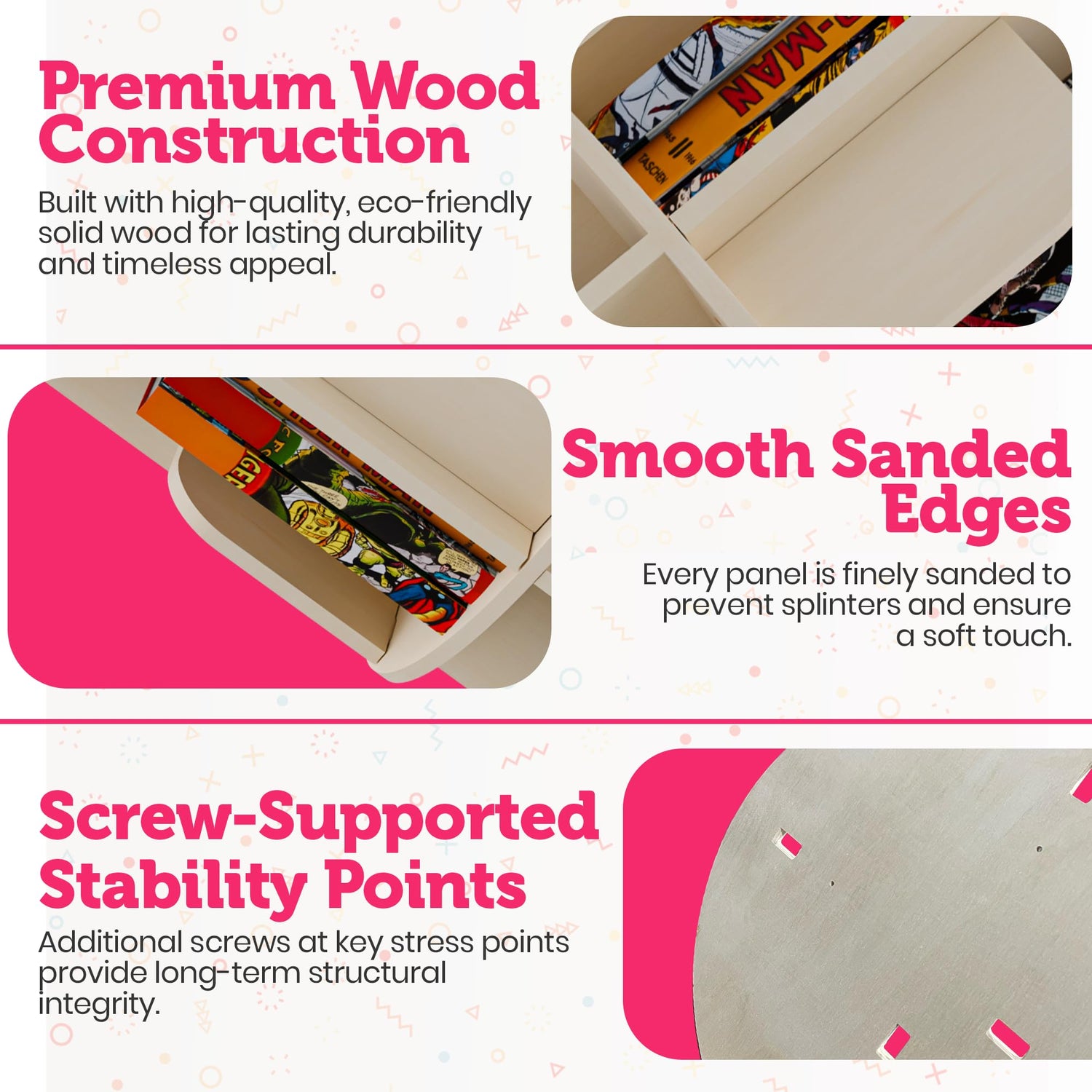 - Space-saving 360-degree design holds 150 + picture books while covering only eighteen inches of floor—ideal for small nurseries and playrooms