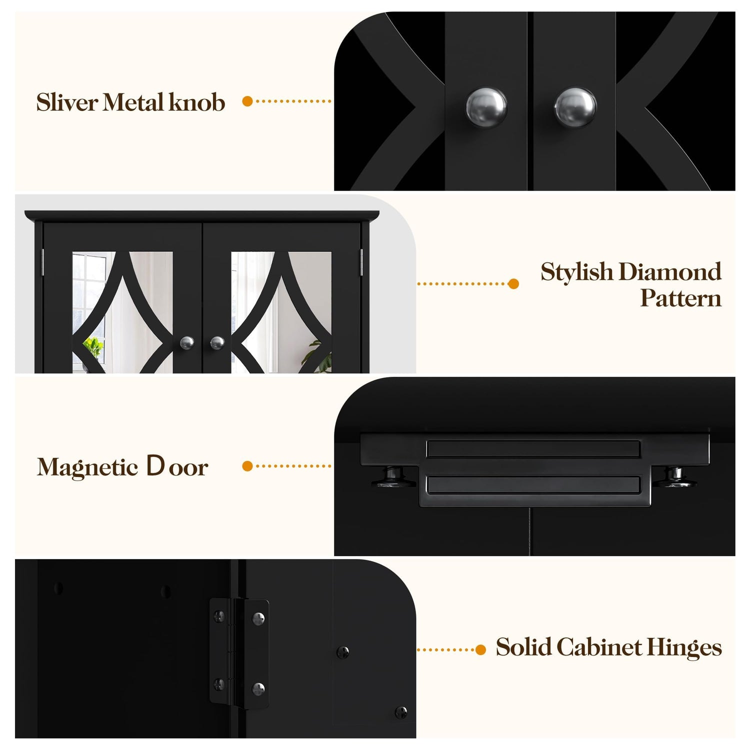 - Stylish Design: With its retro appearance and diamond pattern, the versatile medicine cabinet adds a touch of uniqueness to any space. Suitable for use in bathroom, bedroom, living room or kitchen.