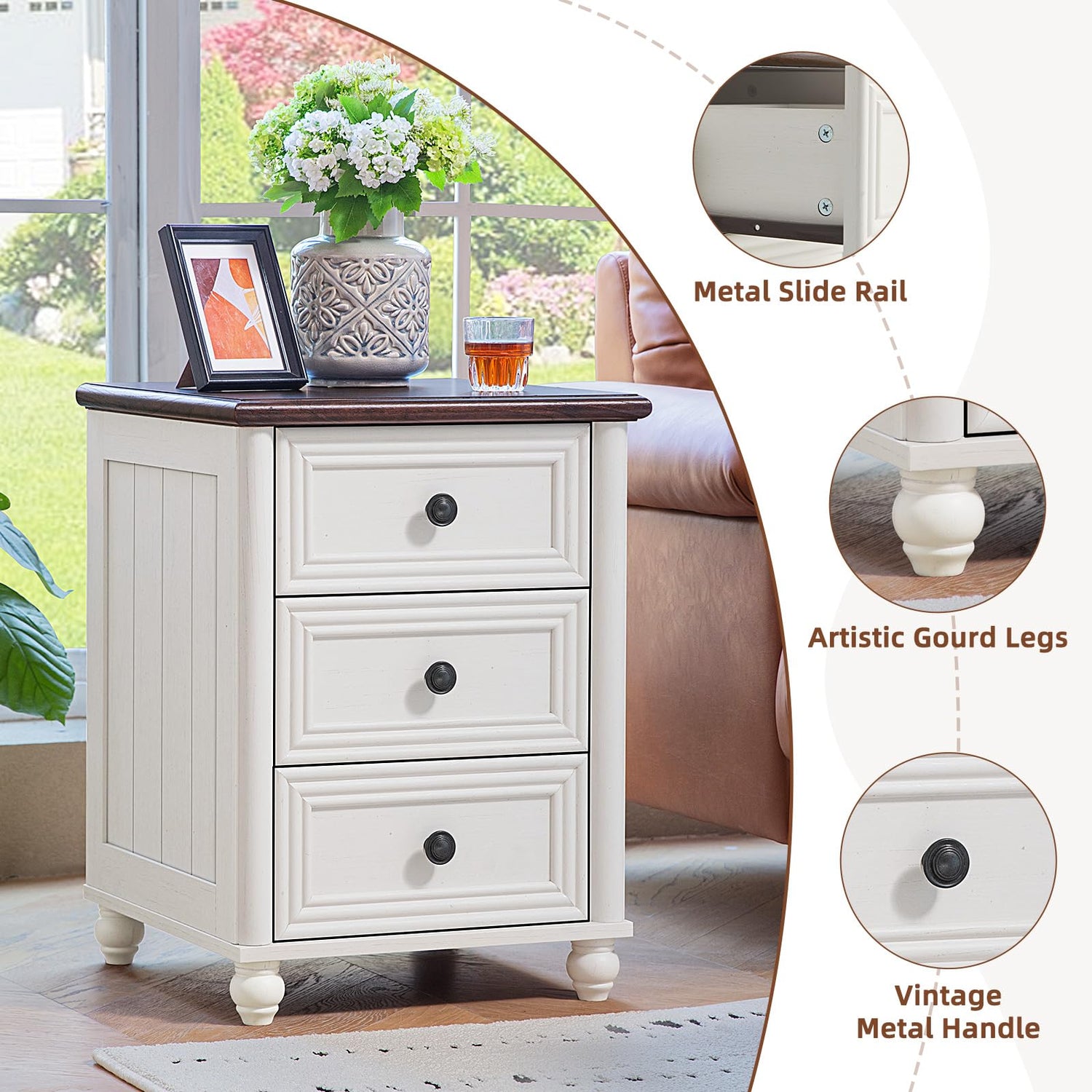 - [Sturdy and Durable] The 3 drawer nightstand Overall dimensions: 18" L x 18" W x 24" H. The farmhouse end table is carefully constructed and matched with four solid wood legs to ensure durability and stability. The thicker tabletop provides stronger load-bearing force and is not easy to damage. This couch table can accompany you for many years.