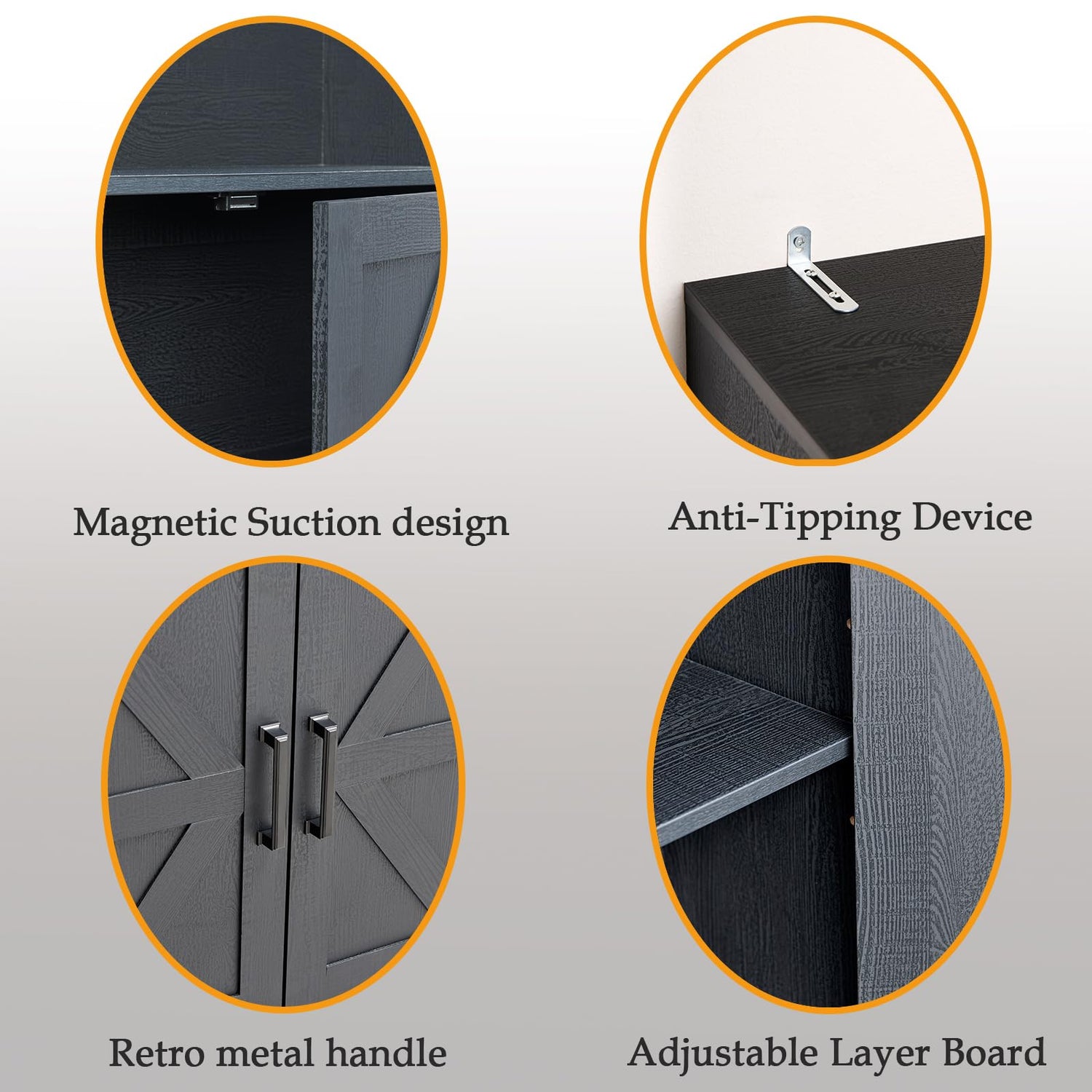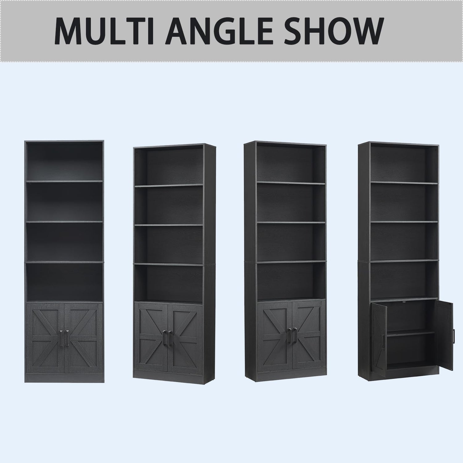 - [MULTI-FUNCTIONAL BOOK CASE]The Farmhouse Style Bookshelf is a versatile piece of furniture that can be used as a living room display cabinet, kitchen storage cabinet, Study Room bookceses, and the adjustable shelves on the barn doors allow you to easily customise the storage space to suit your needs.