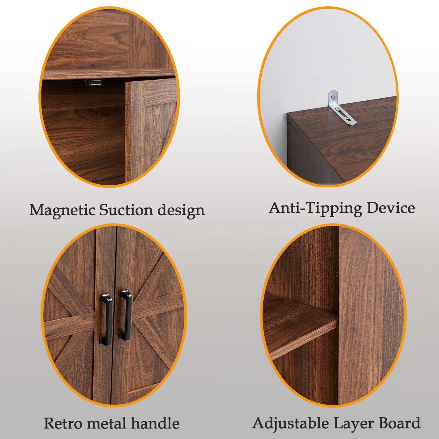 - [FARMHOUSE STYLE DESIGN]Wooden bookshelves with unique barn doors and farmhouse woodgrain finishes add a touch of rustic charm and cosy nature to your space. Metal door handles add a stylish touch to the storage cabinet. The barn door design also makes the farmhouse book shelf door more sturdy and stable.