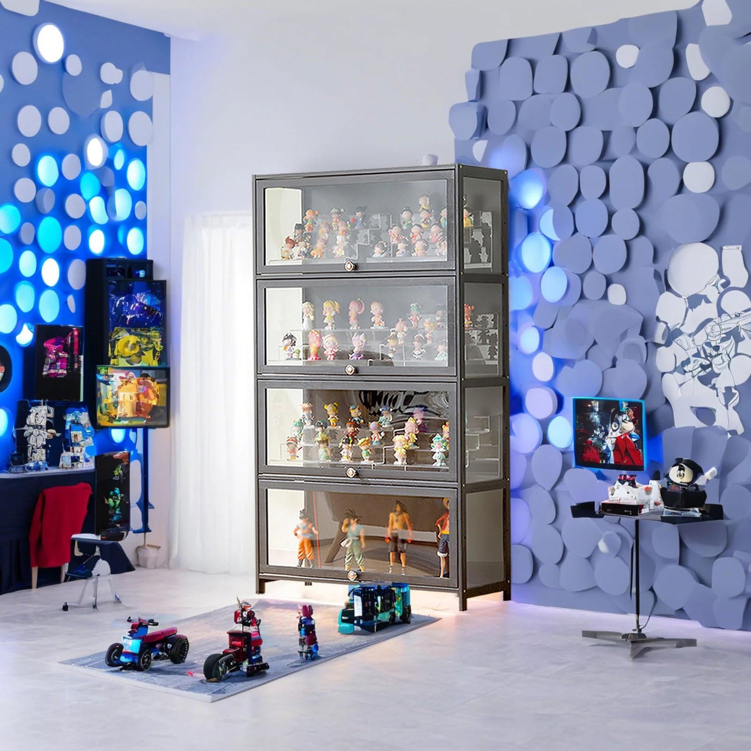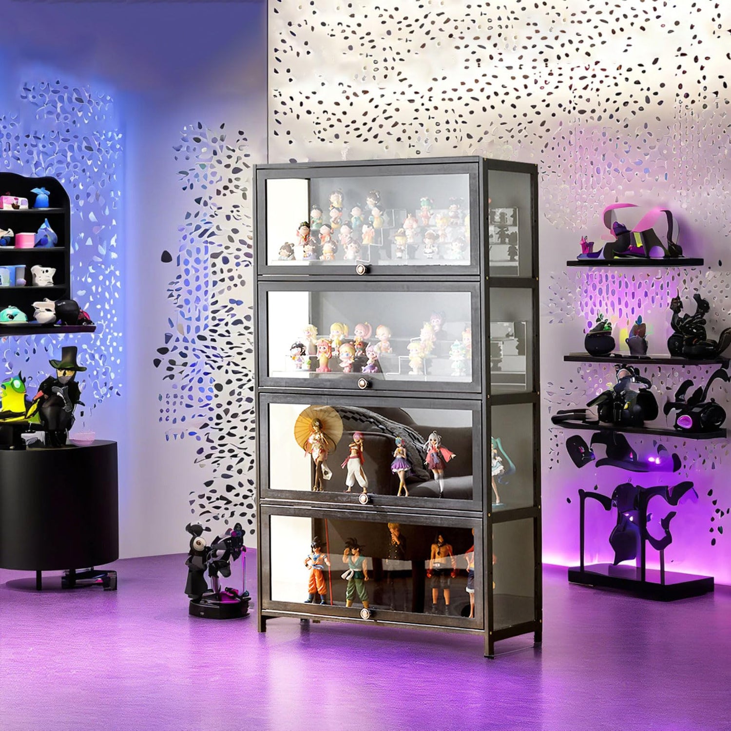 • MULTIFUNCTIONAL STORAGE SOLUTION: This display cabinet serves as an ideal curio figure case and living room storage cabinet, perfect for showcasing collectibles and toys. Its versatile design adapts seamlessly to various settings, allowing you to store and display items beautifully