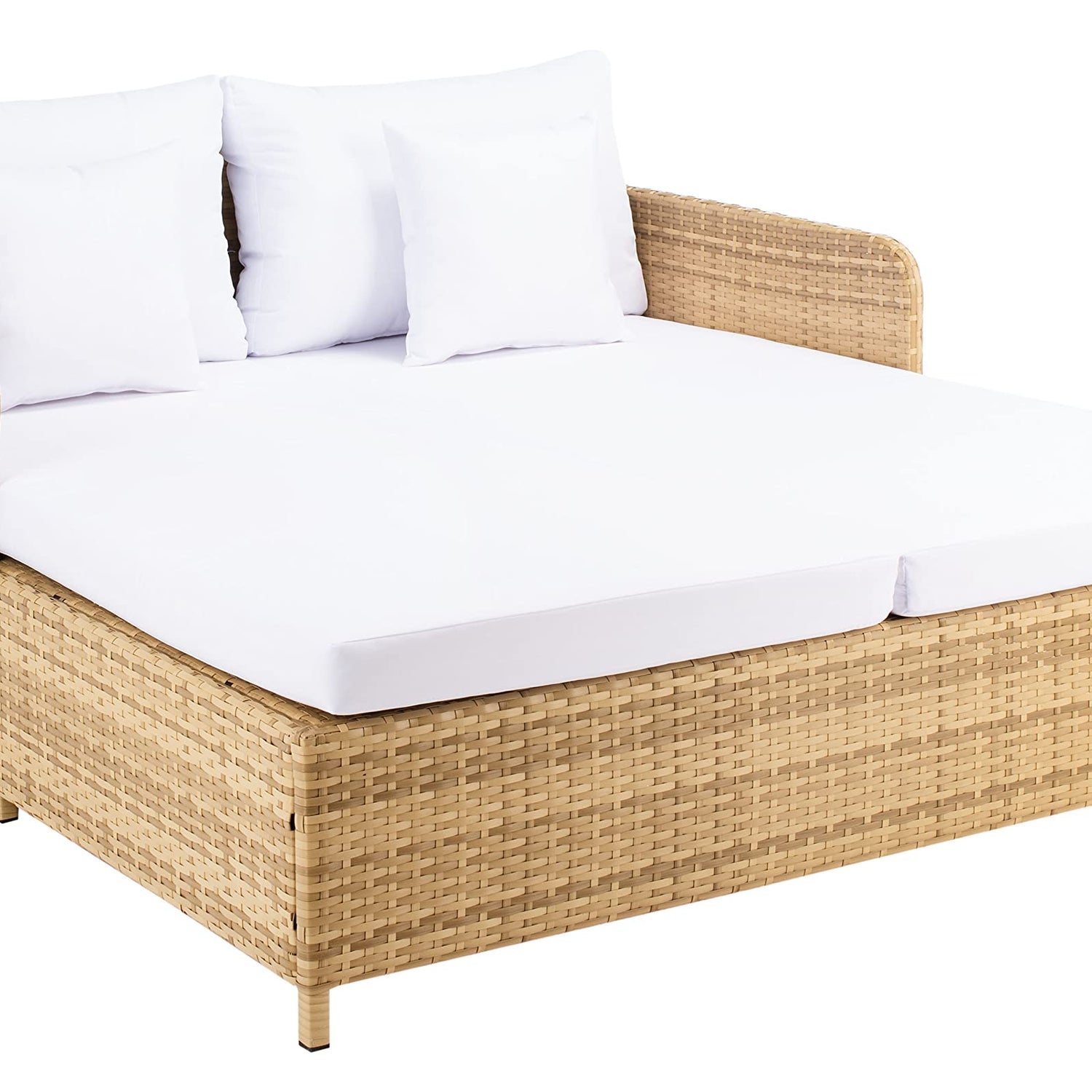 Details: The luxury of an exclusive South Beach resort comes to outdoor décor when you lounge in this sophisticated Cadeo Daybed. Cadeo’s chic natural frame and plush white cushions and pillows will be your favorite poolside destination when it’s time to soak up the sun.