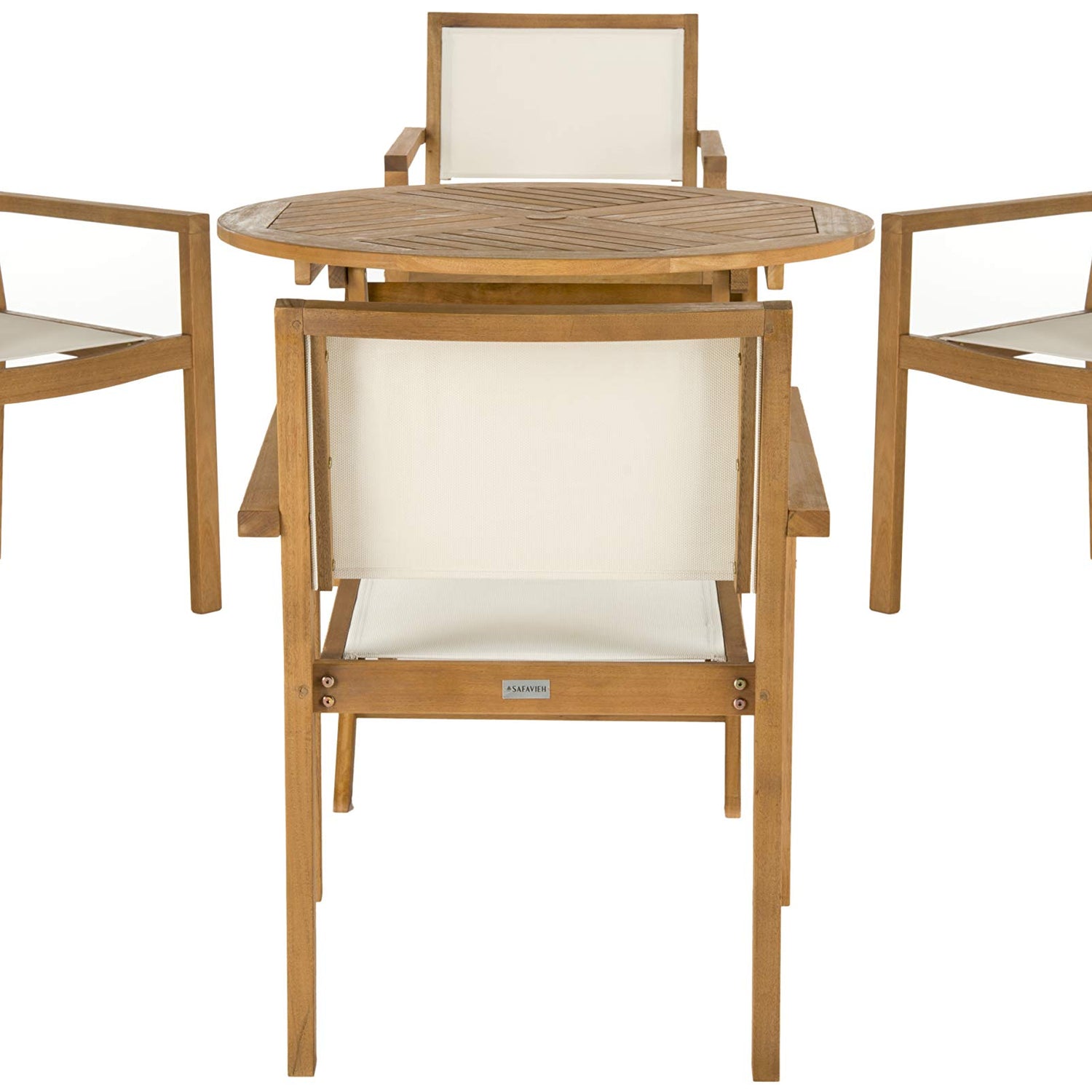SAFAVIEH Outdoor Collection Chante Teak 35.4" Round Table 5 Piece Dining Set