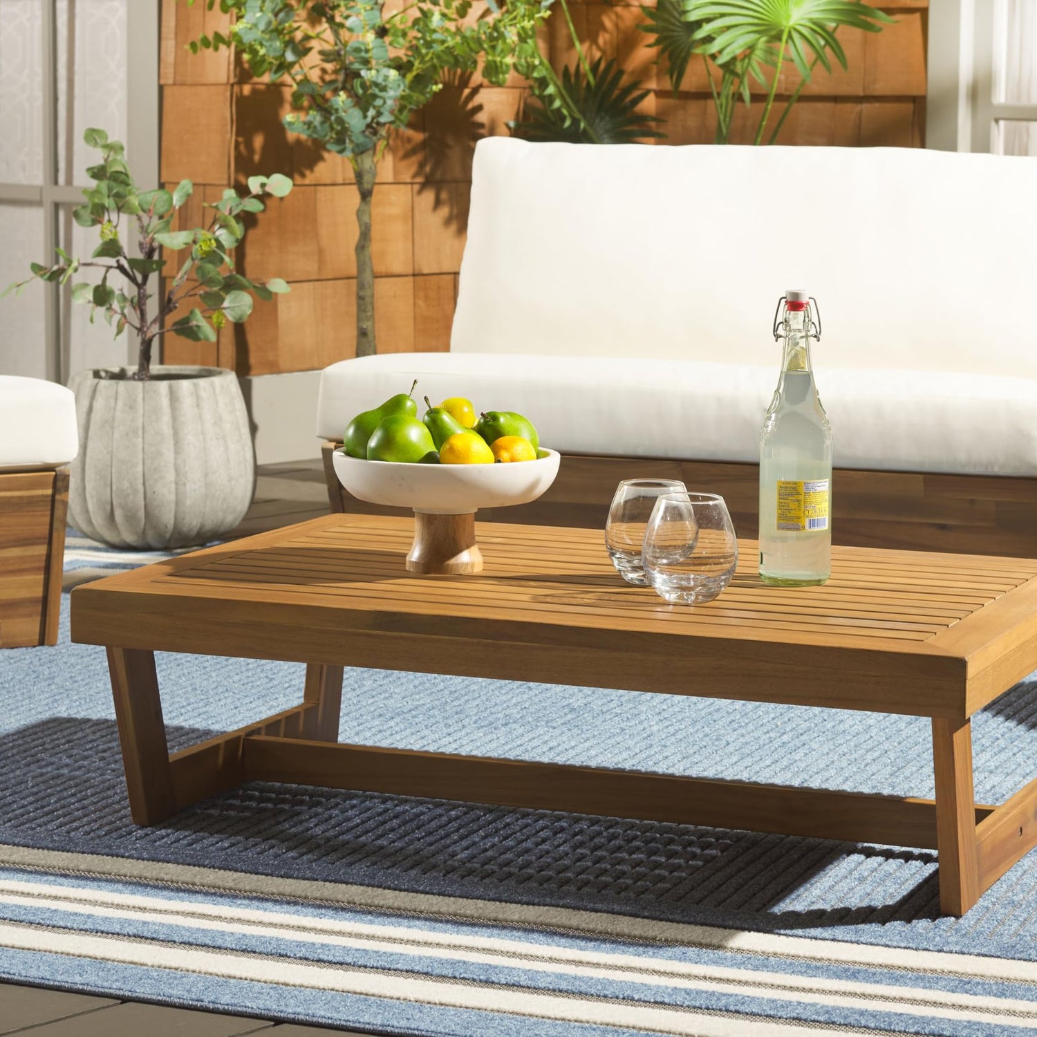 SAFAVIEH Outdoor Collection Dune Natural Brown Slatted Top Solid Wood Coffee Table
