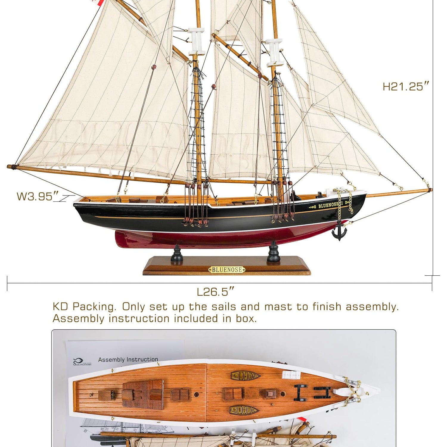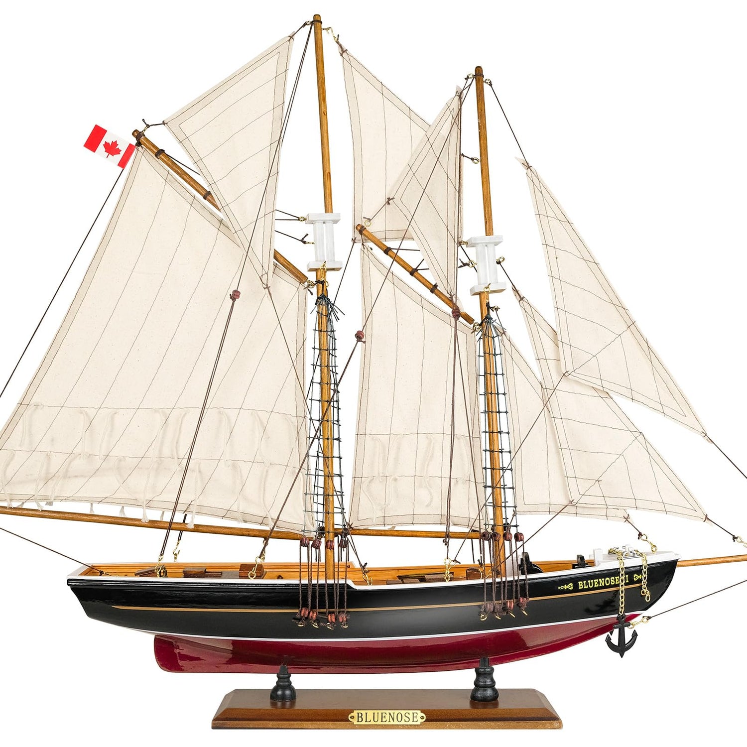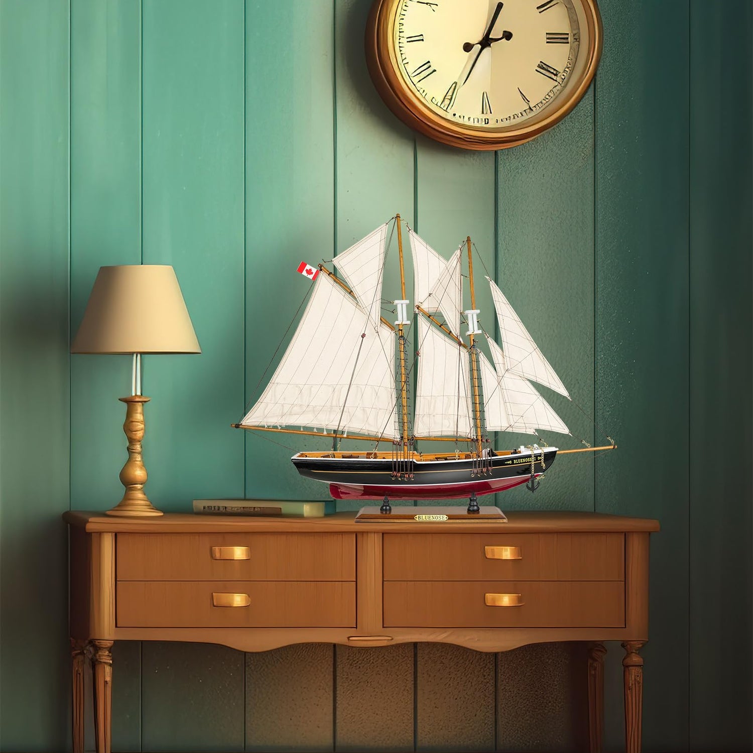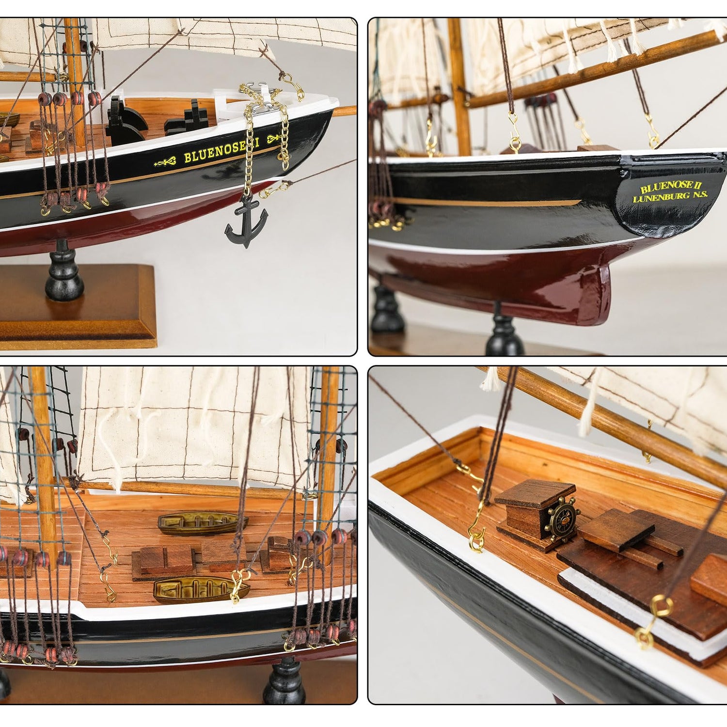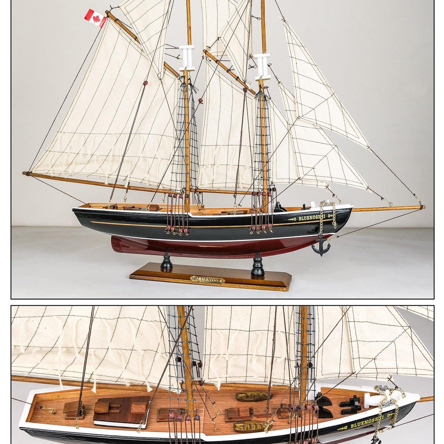 SAILINGSTORY Wooden Sailboat Model Ship Bluenose 1/85 Scale Replica Schooner Sailboat Decor Medium