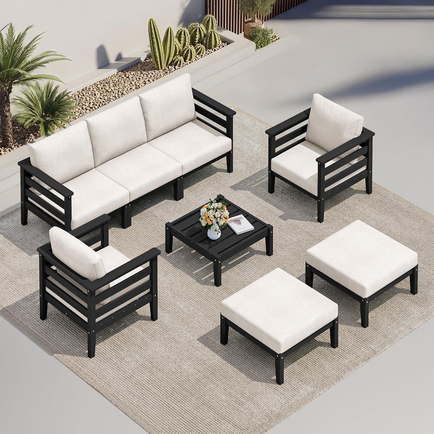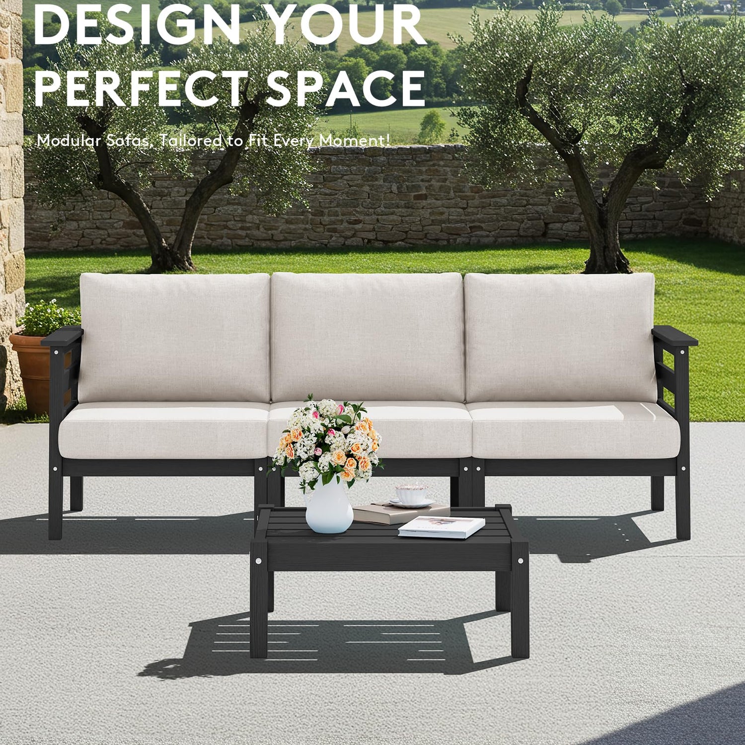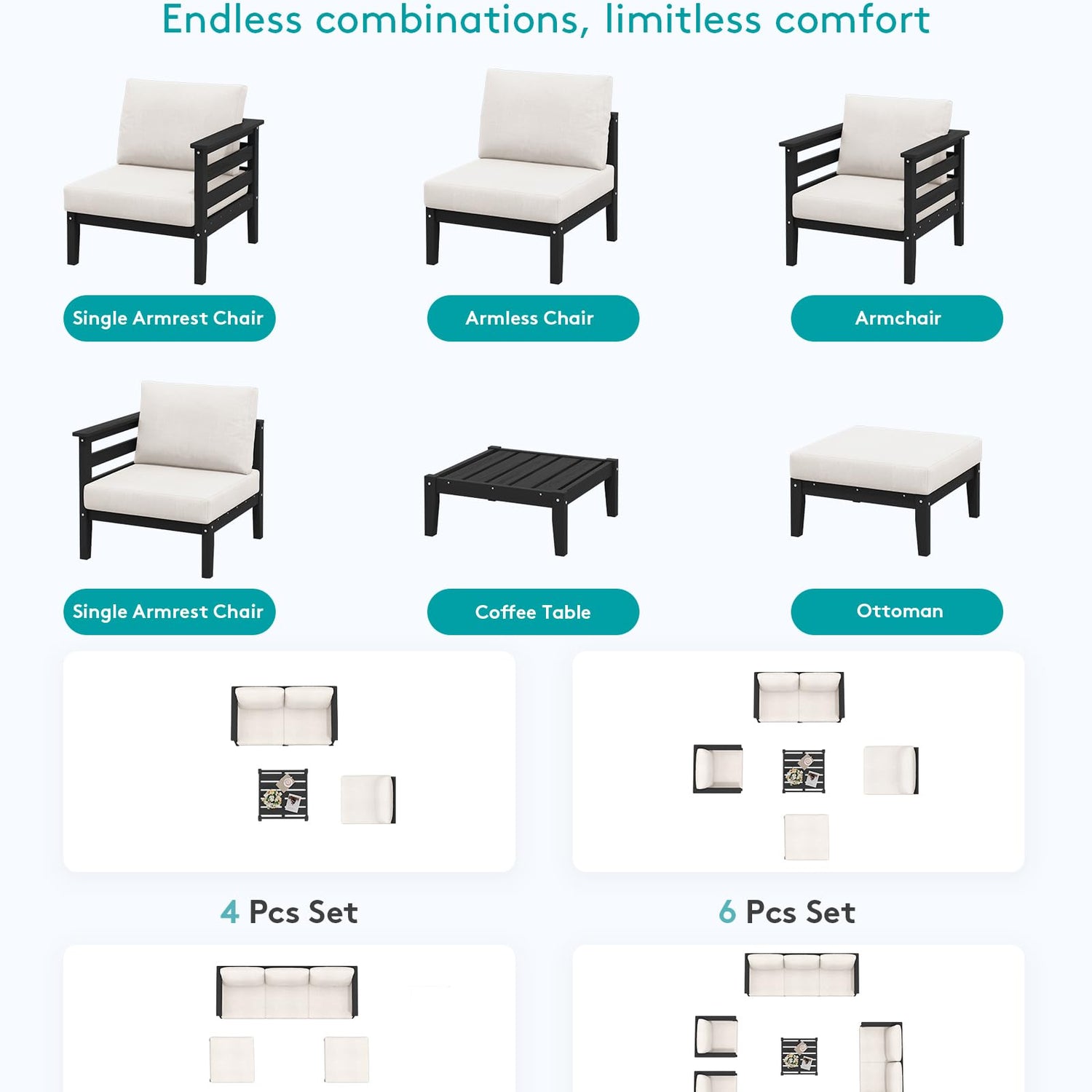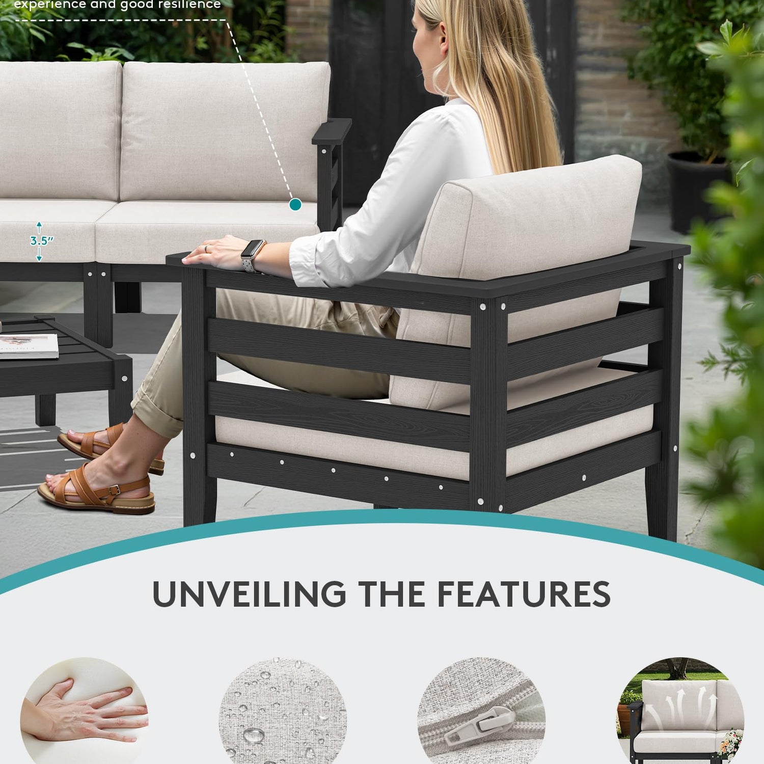 • All-Weather HDPE Frame: The patio furniture set frame is constructed from high-quality HDPE, known for its exceptional durability and weather resistance. Paired with stainless steel screws, this robust frame can withstand the harshest outdoor conditions. Born for outdoor use, this outdoor sofa set is resist fading, cracking, and corrosion, ensuring it stays looking great season after season