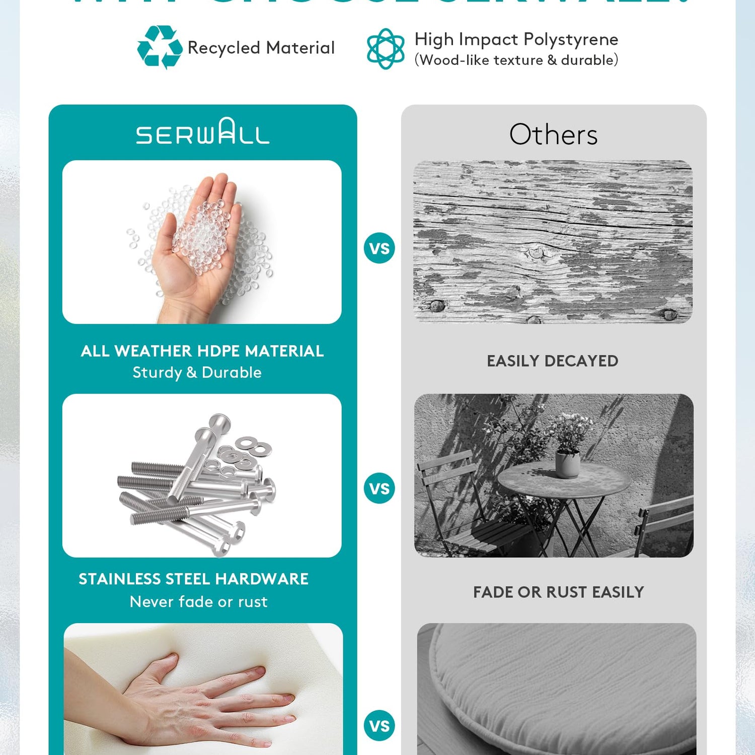 • Low Maintenance: The weather-resistant HDPE frame and stainless steel hardware require minimal upkeep, simply needing an occasional wipe down to maintain their appearance. With this hdpe outdoor furniture, you can enjoy a low-maintenance, hassle-free outdoor seating experience that remains beautiful over time