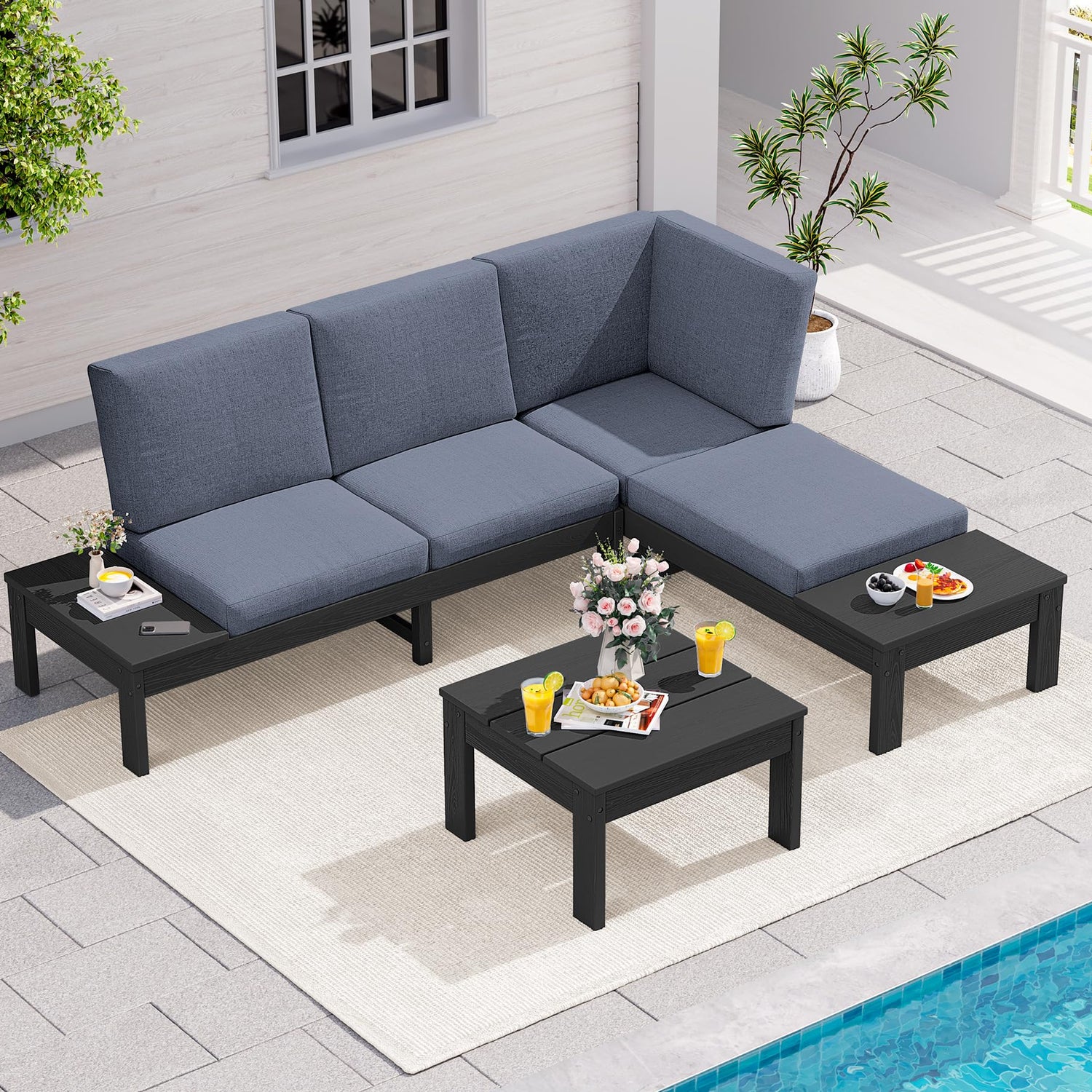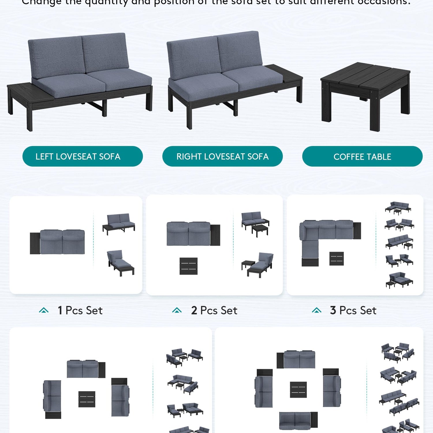 - Flexible Modular Design: This set includes two 2-seater loveseats and a coffee table. Configure them as L-shaped or separate sections to create a versatile sectional sofa or modular patio furniture layout for backyard, deck, or garden lounging