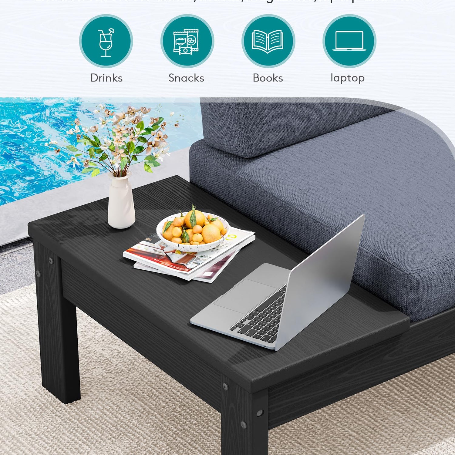 - Built-In Side Table for Convenience: Integrated side table keeps drinks, snacks, phones, or tablets within easy reach, eliminating the need for extra furniture. Designed to reduce clutter and provide convenient, organized outdoor seating for patios, decks, and poolside spaces