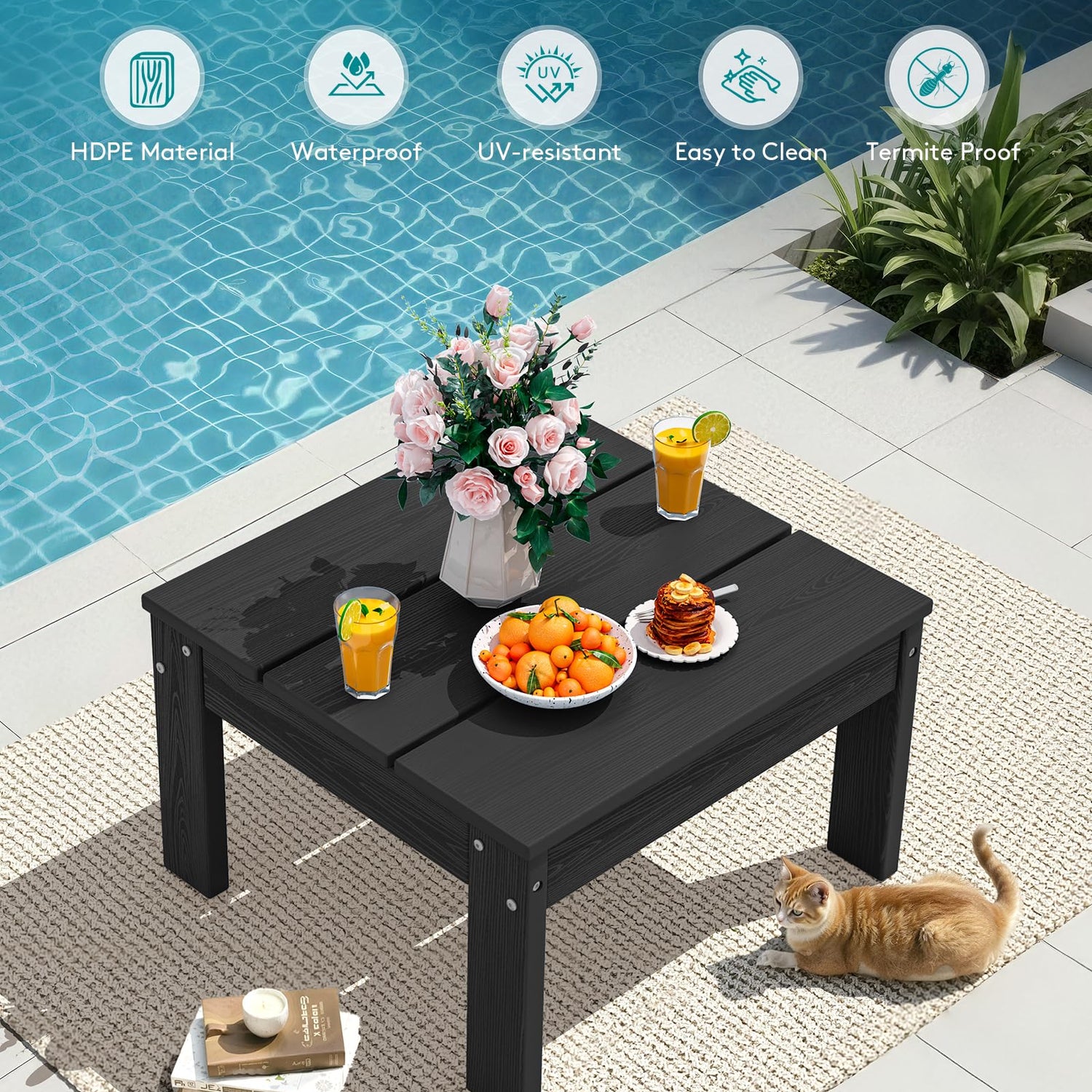 - Versatile Outdoor Coffee Table: This coffee table offers a waterproof, sun-resistant, and easy-to-maintain surface, perfect for drinks, snacks, or decor. It pairs seamlessly with your outdoor sectional sofa or can be used independently, enhancing patios, decks, or poolside areas with practical style
