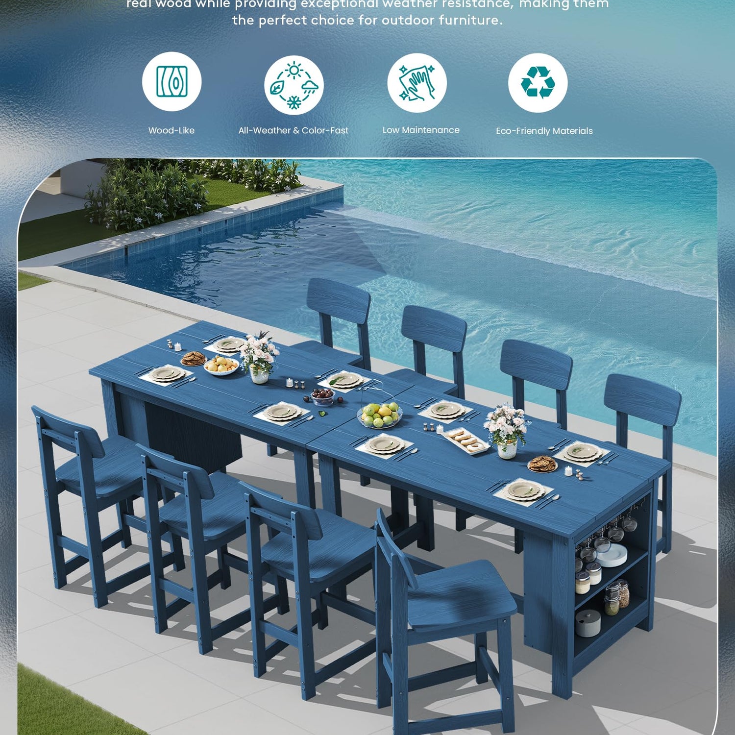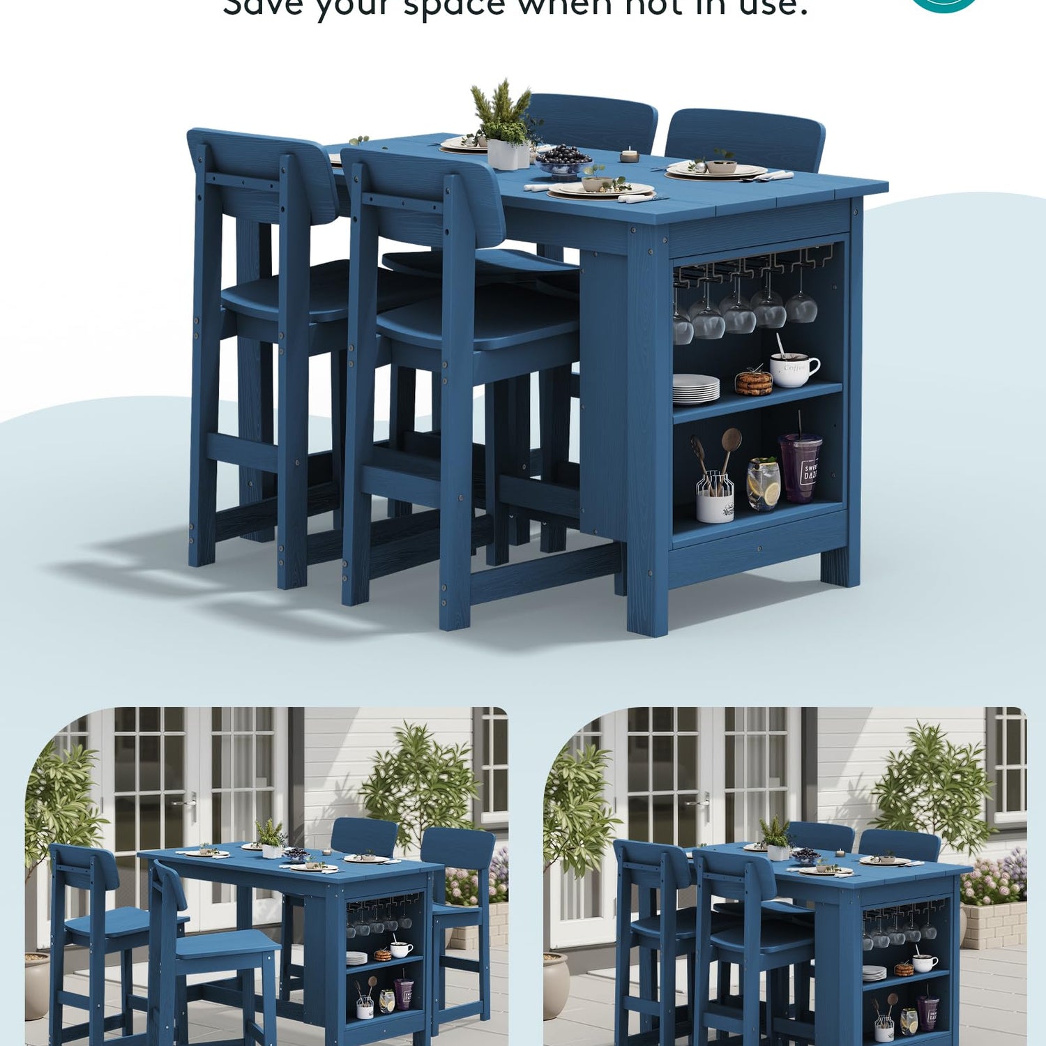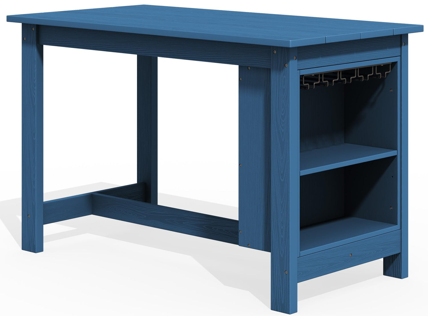 SERWALL Outdoor Bar Table, All Weather HDPE 36" Counter Height Dining Table with Storage and Wine Rack for Patio, Garden, Backyard, Balcony, Poolside, Blue