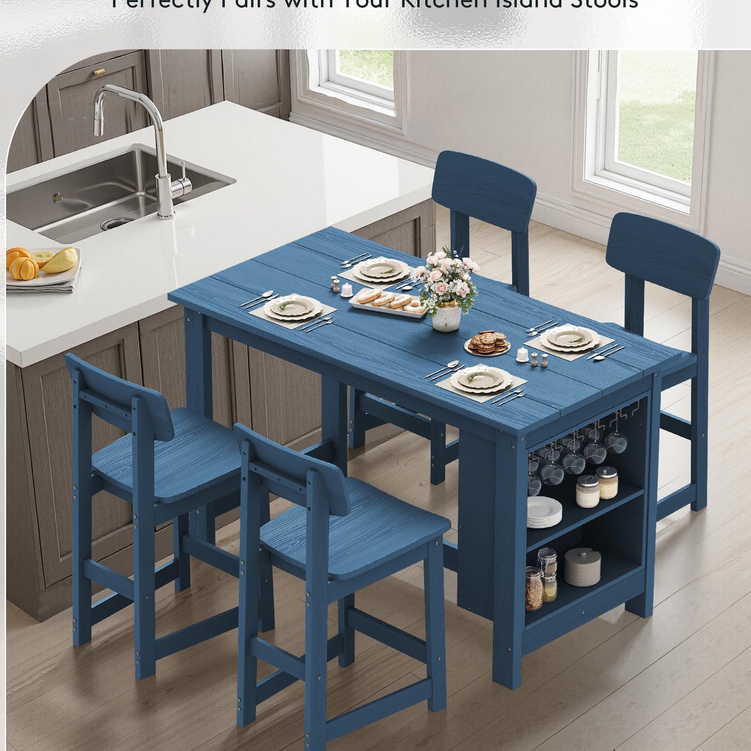 - Functional Storage: Two tiers of side shelves neatly organize beverages, condiments, and party supplies. The inverted wine glass rack on top saves space while allowing glasses to dry quickly. Whether used as a dining table, island extension, or coffee bar, it offers versatile convenience.