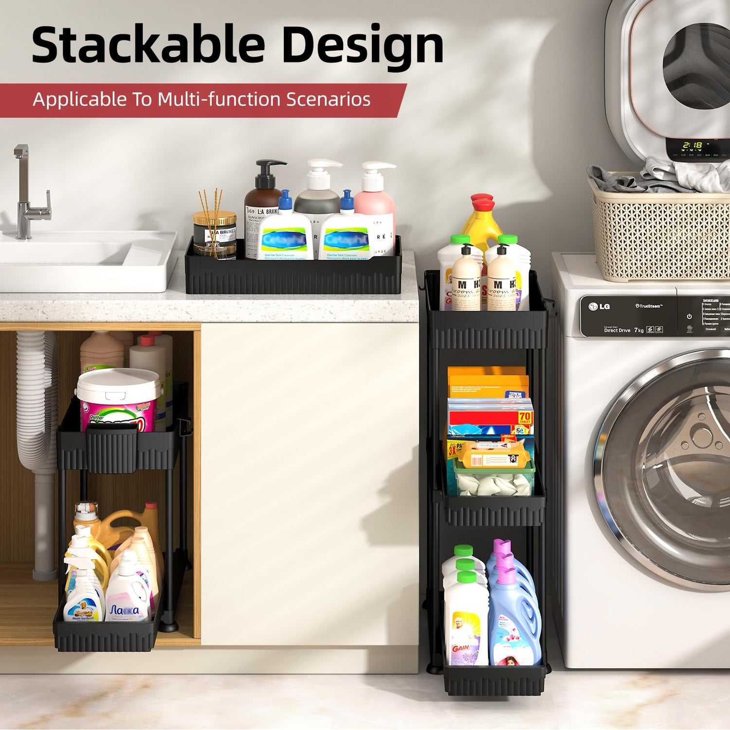 Sevenblue 4 Pack Under Sink Organizer, Bathroom Organizers and Storage, 2 Tier Multi-Use Pull Out Cabinet Organizer with Hang Hooks and Cups (Black, 4 Pack)