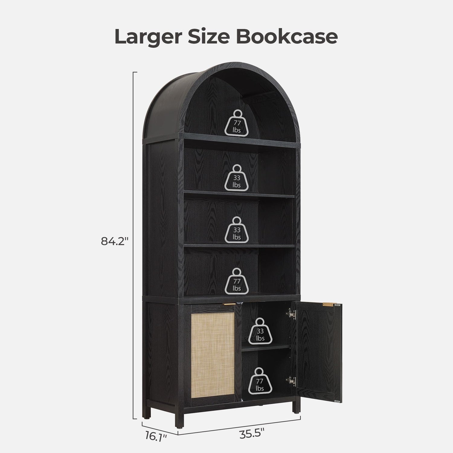 SICOTAS Book Shelf Arched Cabinet Bookshelf Arch 84.2" Tall Bookcase 5 Tier Large Bookshelves with Doors Storage Rattan Boho Wide Book Shelves Case for Living Room Kitchen Office Bedroom Library