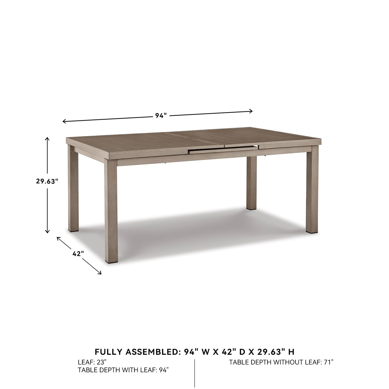 - DIMENSIONS: Measures 42" W x 94" D x 29.63" H. Dining chairs sold separately. With this spacious table, you're all set for an elegant dining experience