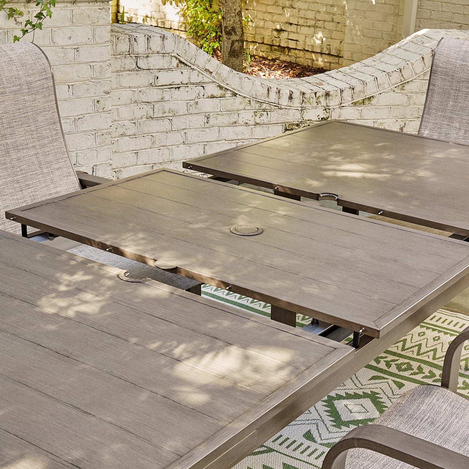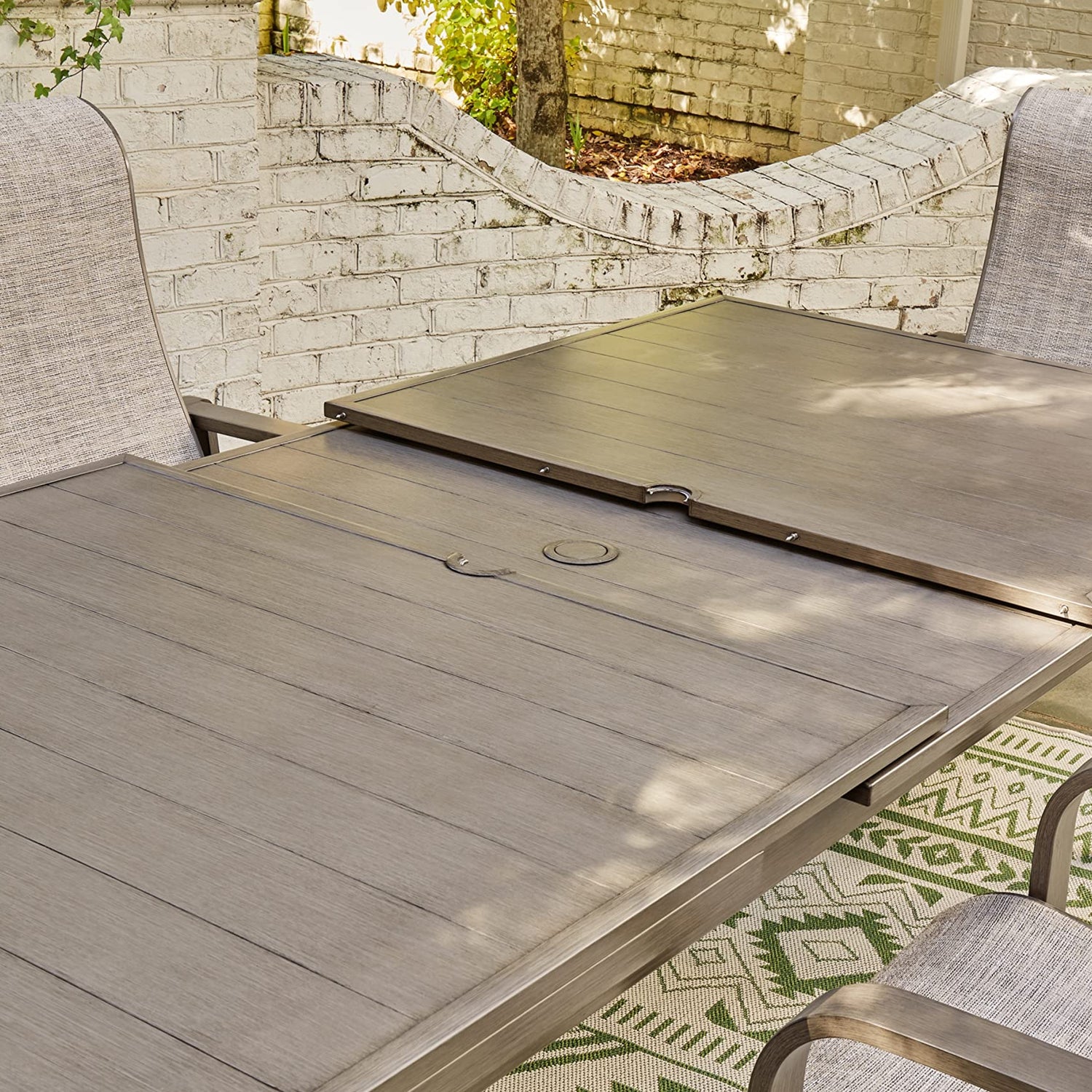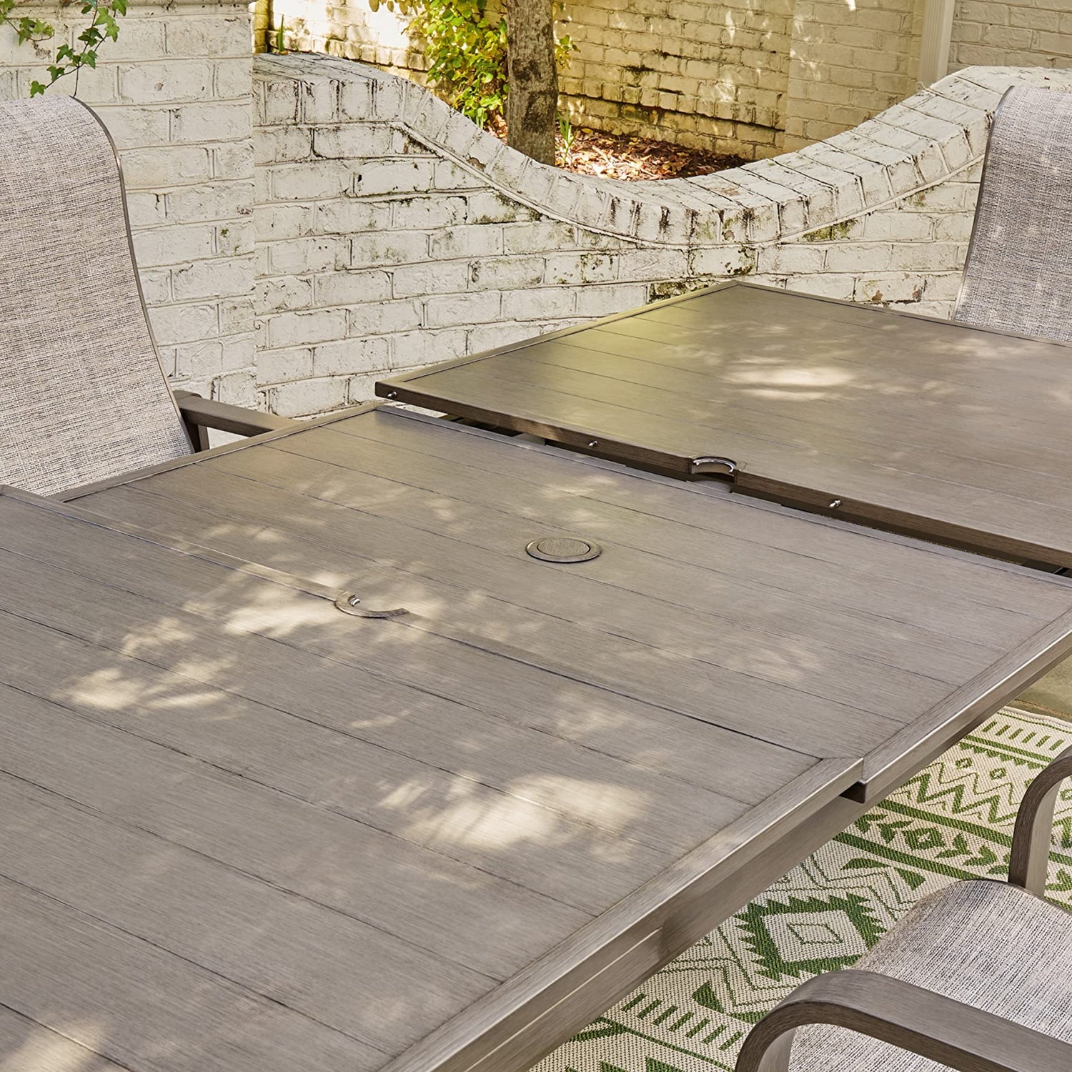 Details: Balancing effortless natural beauty and minimalist design, this dining table seamlessly brings your contemporary style outdoors. Sporting a wood-look finish, it entices with an extension feature that easily expands the table to provide additional space. This sleek yet durably made piece refines the art of relaxed outdoor living. Outdoor entertaining necessitates sustainable, comfortable, high-quality outdoor dining tables and accessories. An all-weather outdoor dining table that can withstand the elements is an investment in many years of outdoor entertaining. From an outdoor dining table with fire pit to an extendable outdoor dining table, we have attractive, top-quality furniture to make your entertaining dreams come true.