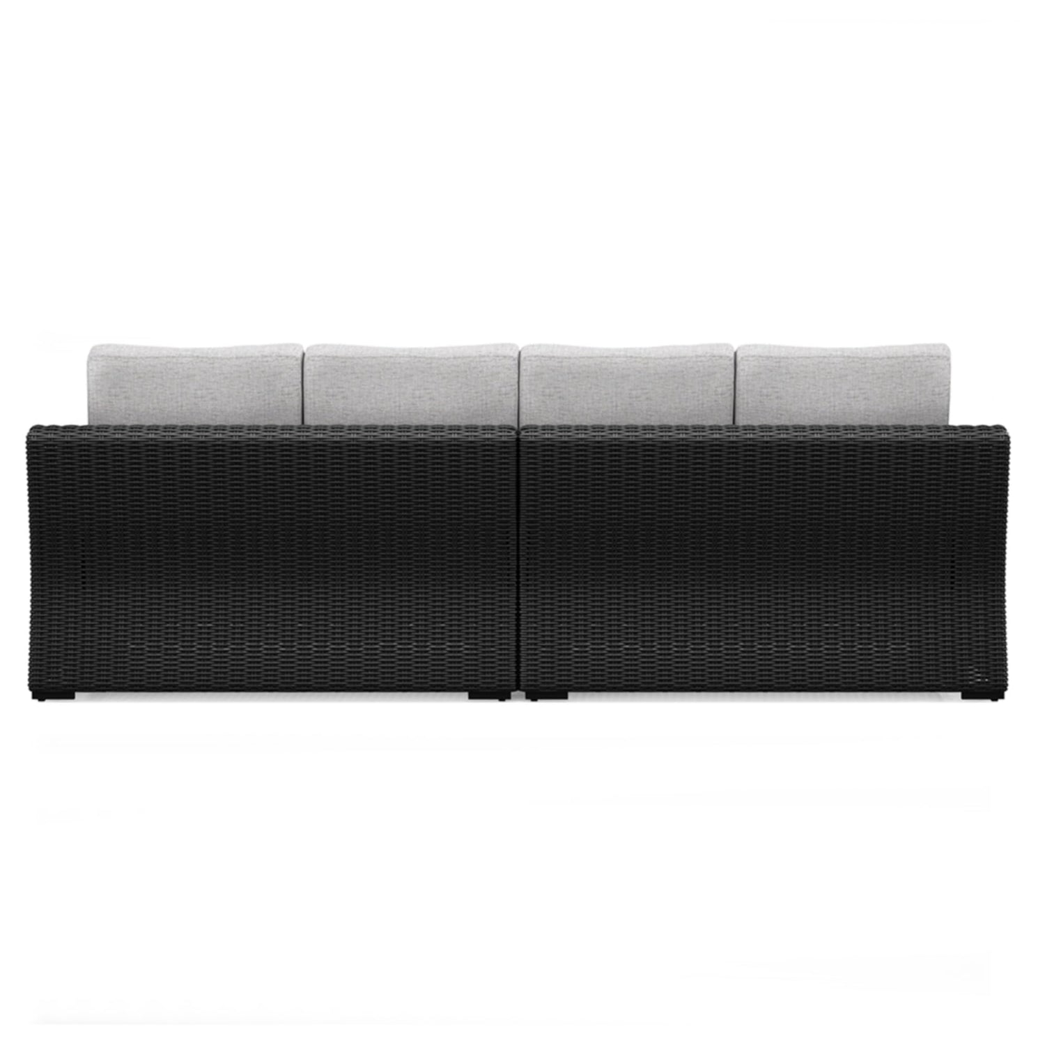 • DURABLE DESIGN: Made with all-weather, handwoven resin wicker over a powdercoated rust free aluminum frame. Includes 4 throw pillows. Zippered cushions are covered in Nuvella polyester