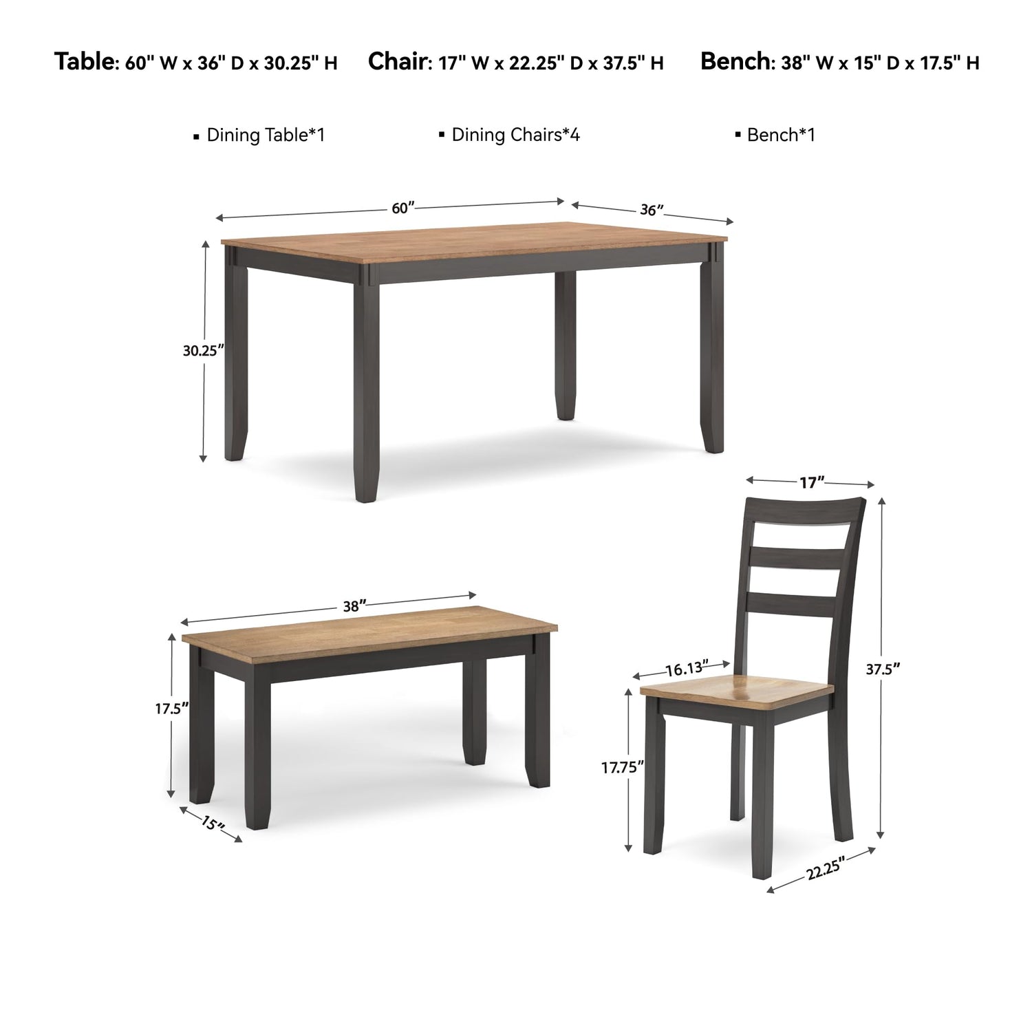 Signature Design by Ashley Gesthaven Casual Dining Table with 4 Chairs and Bench, Set of 6, Light Brown & Dark Brown