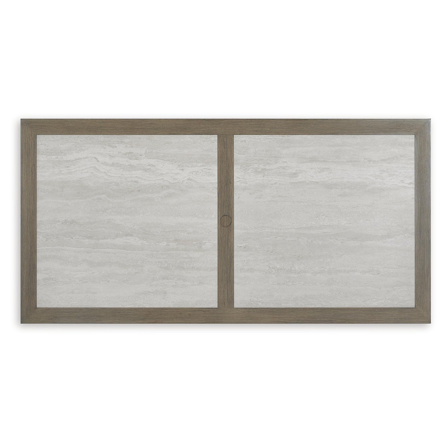 Signature Design by Ashley Rainier Ranch Contemporary Sintered Stone Tabletop Outdoor Dining Table with 4 Legs, Light Brown & Beige