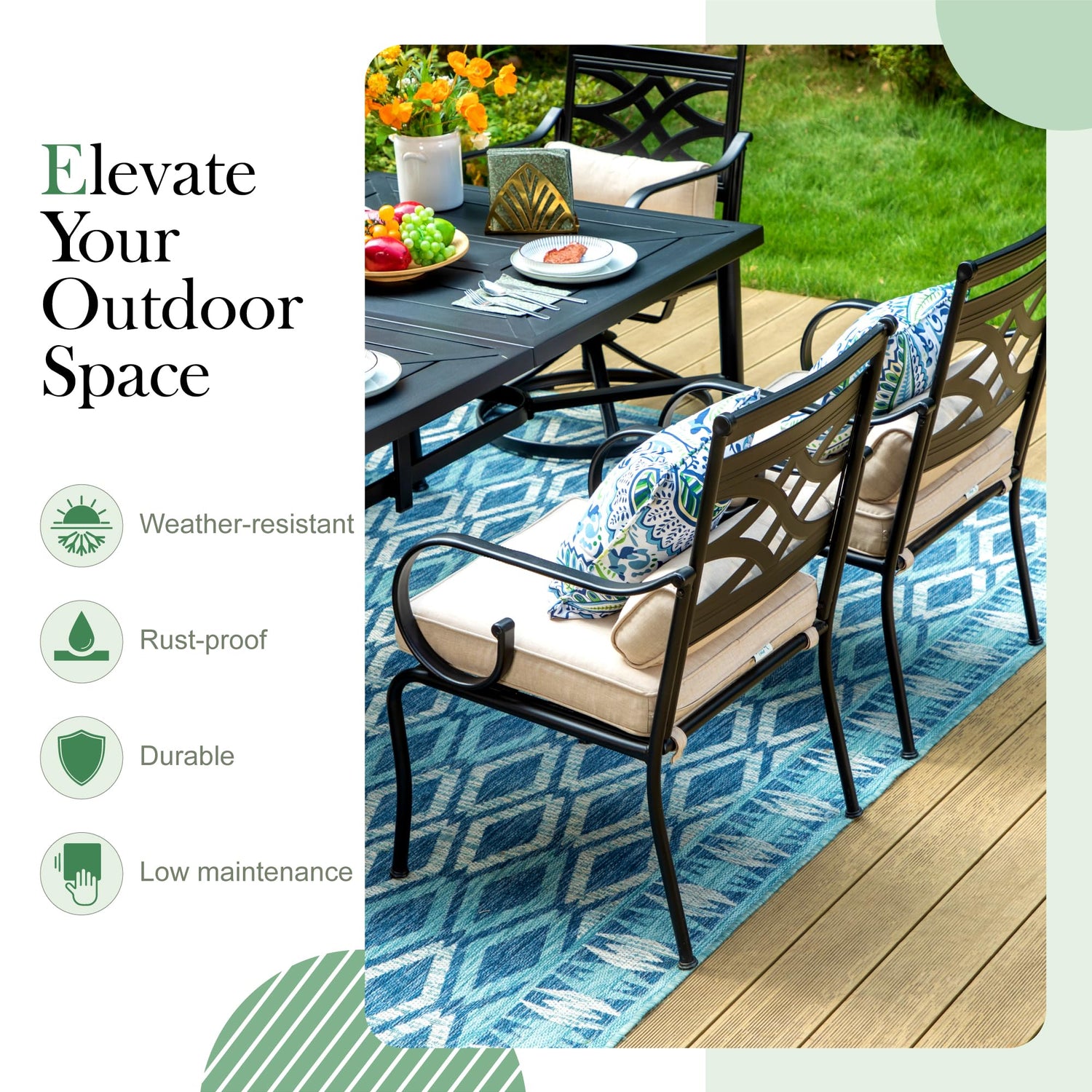 • 6 Person Patio Dining Set: Enjoy spacious and comfortable dining! Perfect for dinners and gatherings. Crafted from steel frame with Ecoating, this set is designed to withstand the elements and provide longlasting durability