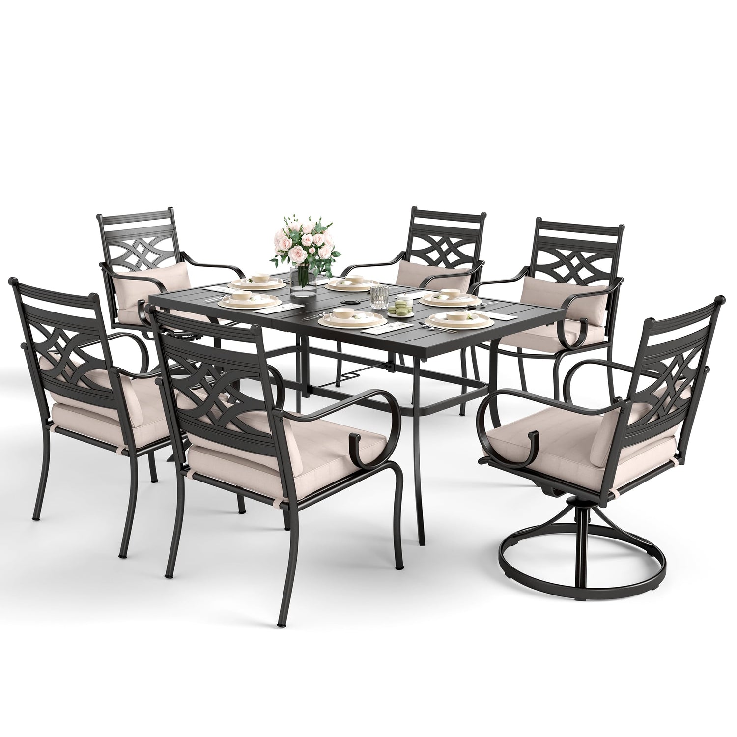 Sophia and William Outdoor Patio Dining Set for 6, Outdoor Table and Chairs, Removable Seat Cushions, 4 Fixed,2 Swivel Chairs, 59" Black Patio Dining Table