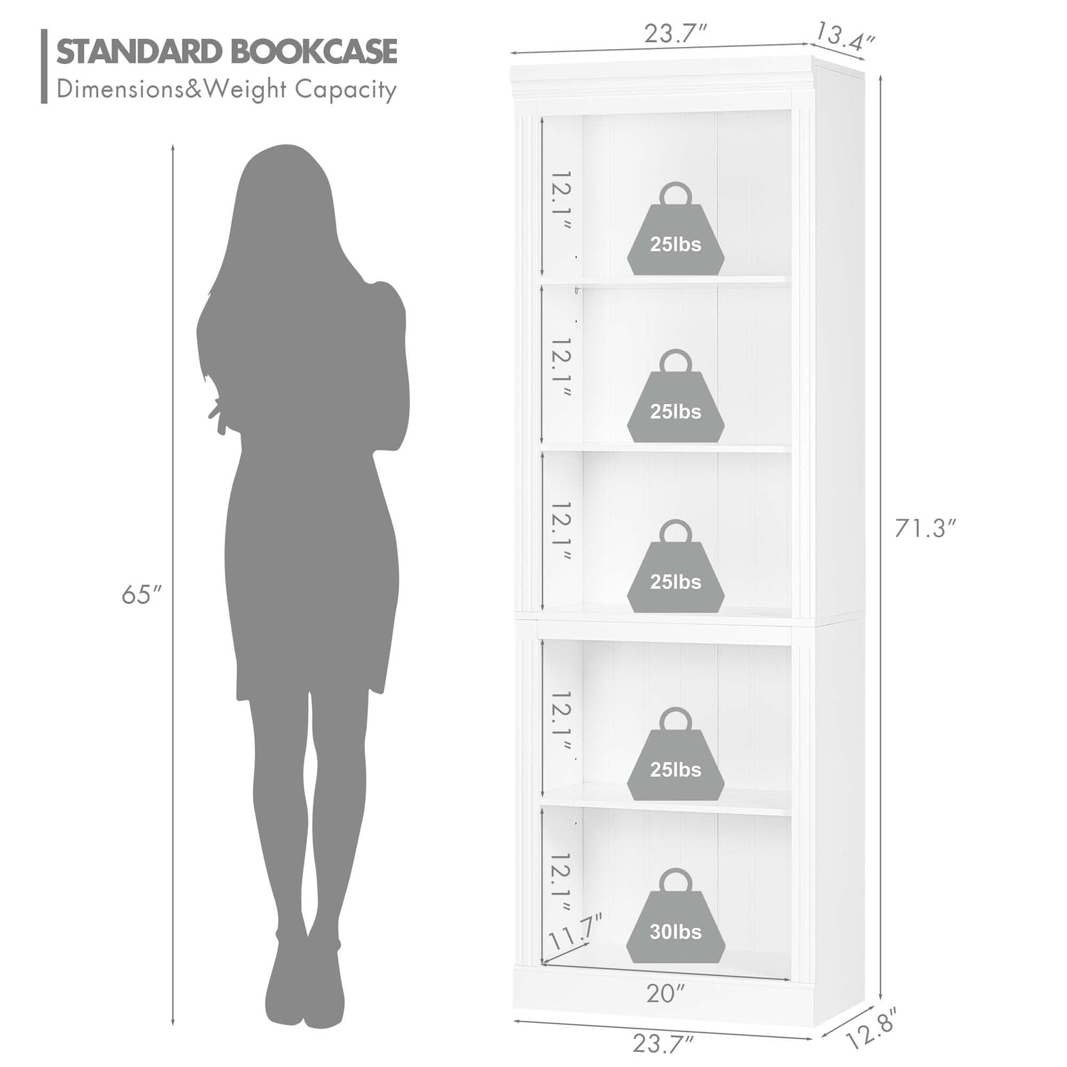 - Space-Saving Tall Bookshelf Design: Measuring 23.7"W x 13.4"D x 71.3"H, this tall bookcase features deeper shelves than most white bookshelves, offering ample room for large books, plants, collectibles, file folders, or baskets.