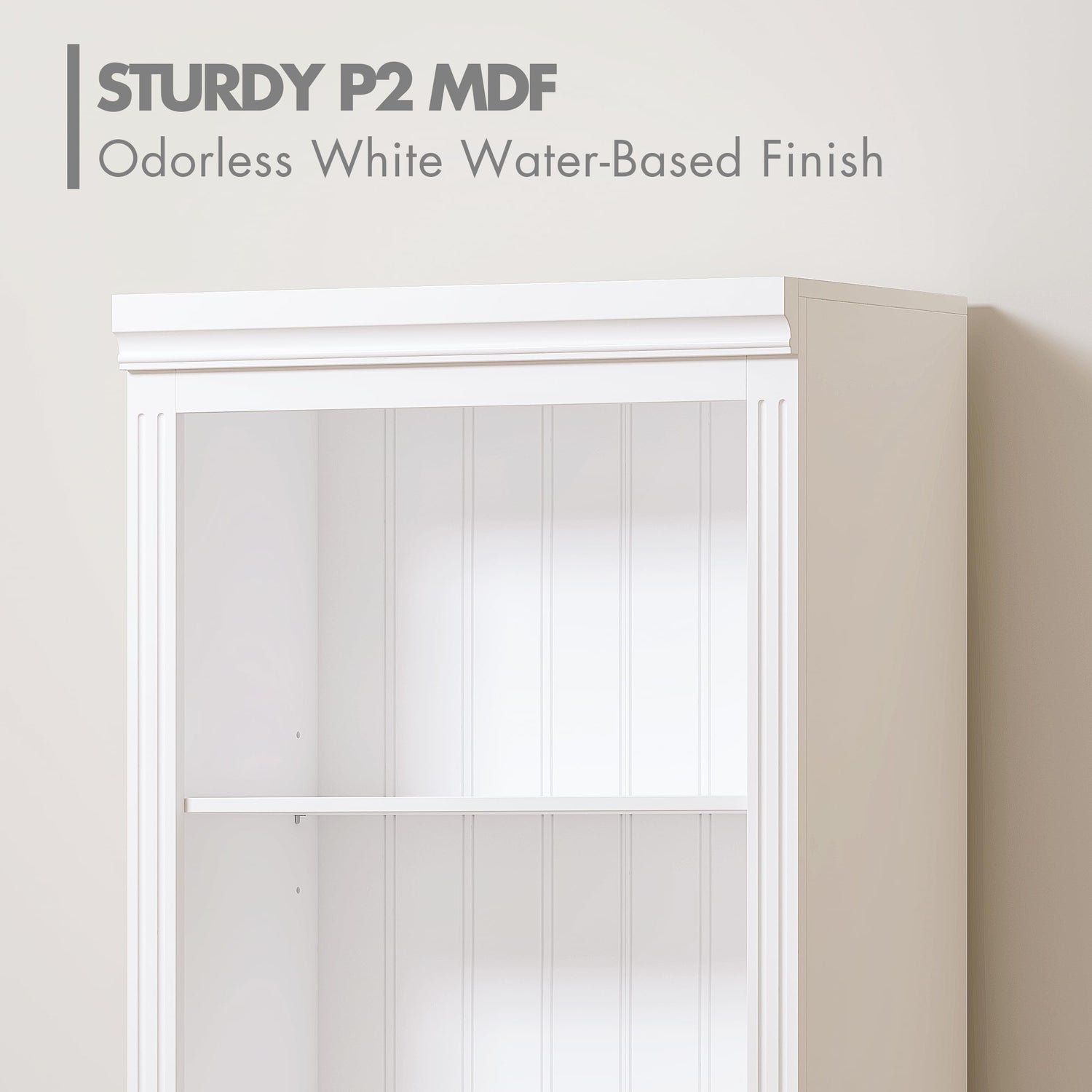 - Sturdy White Bookshelf with Safety: Crafted from robust P2 MDF, this wooden book shelf features elegant surfaces with an odorless white water-based finish that resists stains and wipes clean effortlessly. Includes anti-tip kit to keep the slim bookshelf permanently secure and stable.