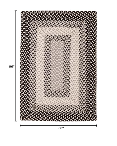 Super Area Rugs 5X8ft Farmhouse Braided Rug - Natural Soft Cotton Carpet for Living Room - Primitive Country Woven Rug - Black/Gray/Ivory